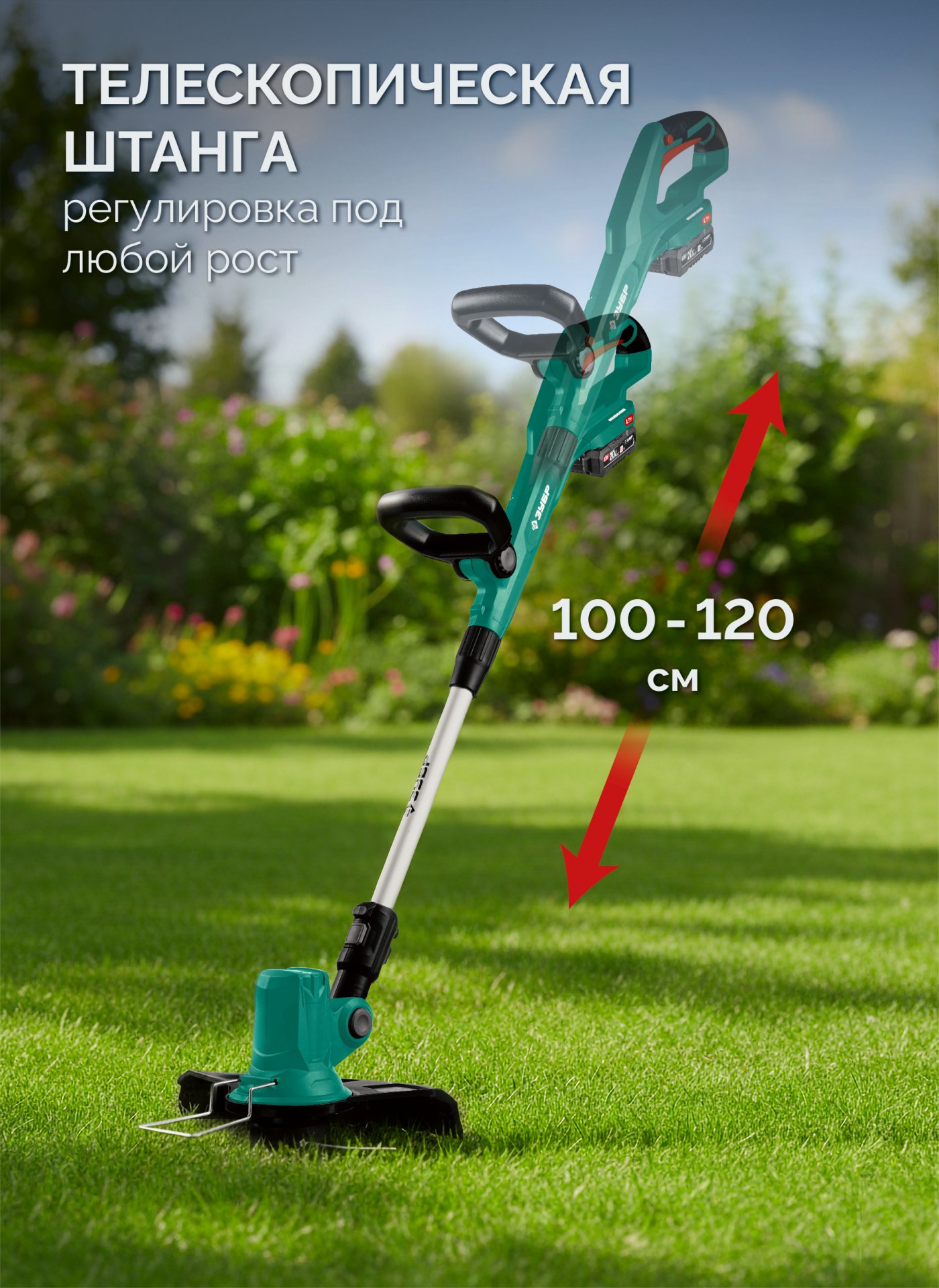 - Телескопическая штанга повышает комфорт использования людьми разного роста