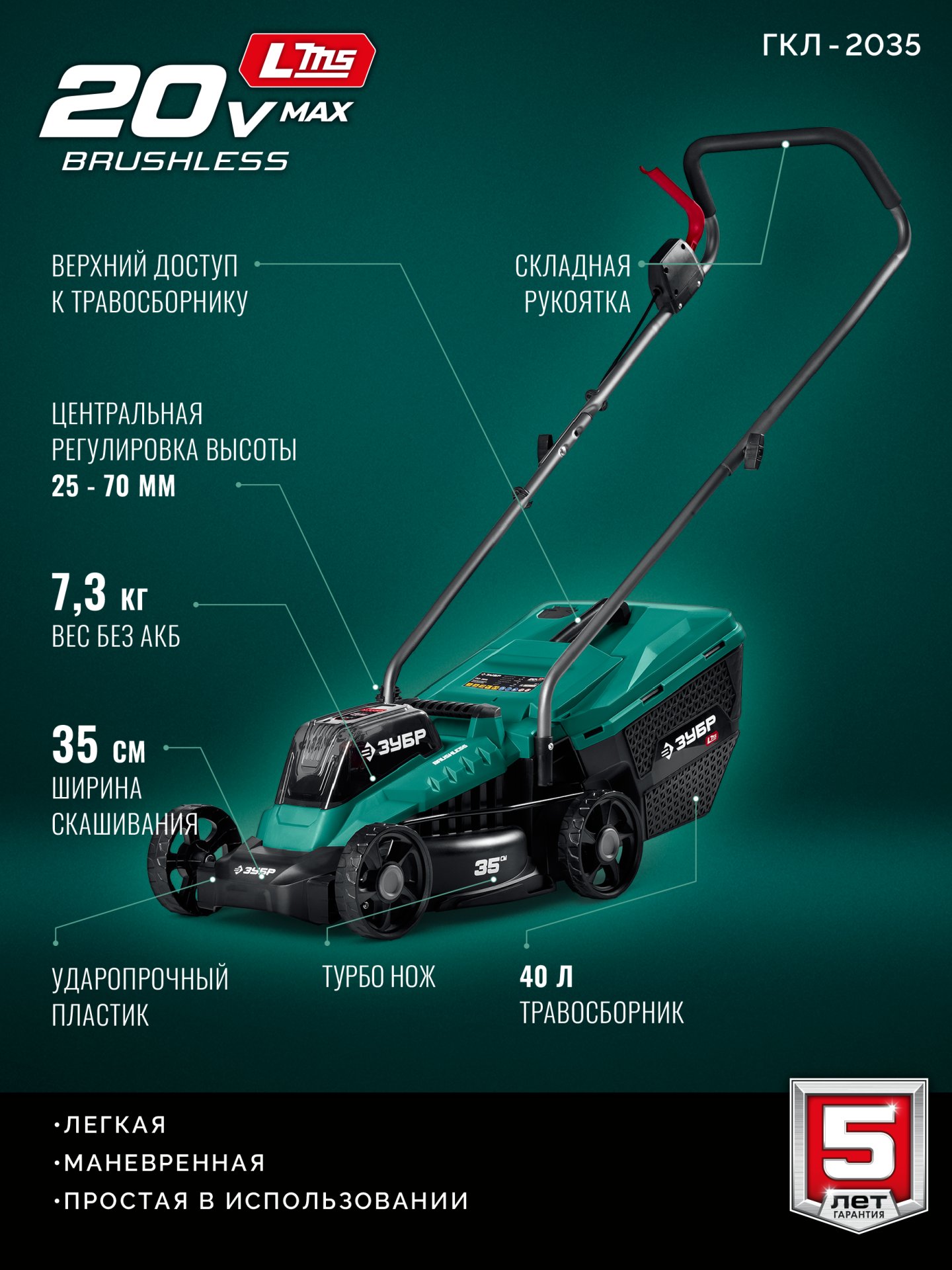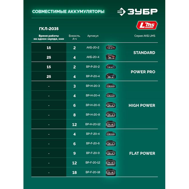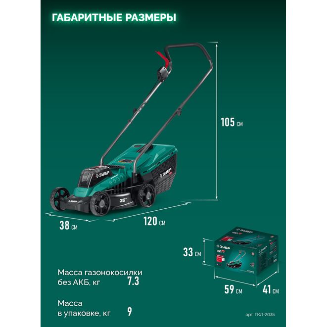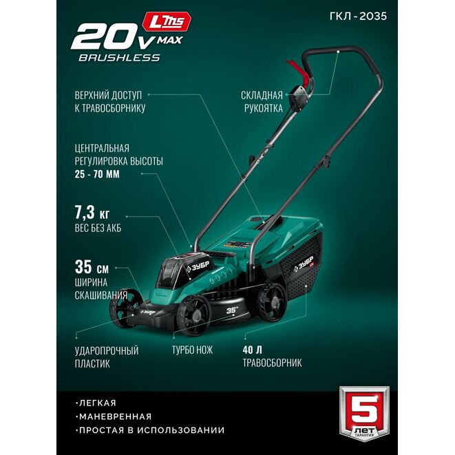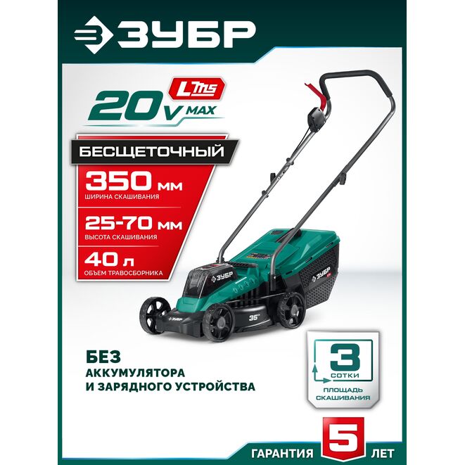 Принадлежности для ЗУБР 20 В, 350 мм, без АКБ (LMS), газонокосилка аккумуляторная бесщеточная (ГКЛ-2035):
