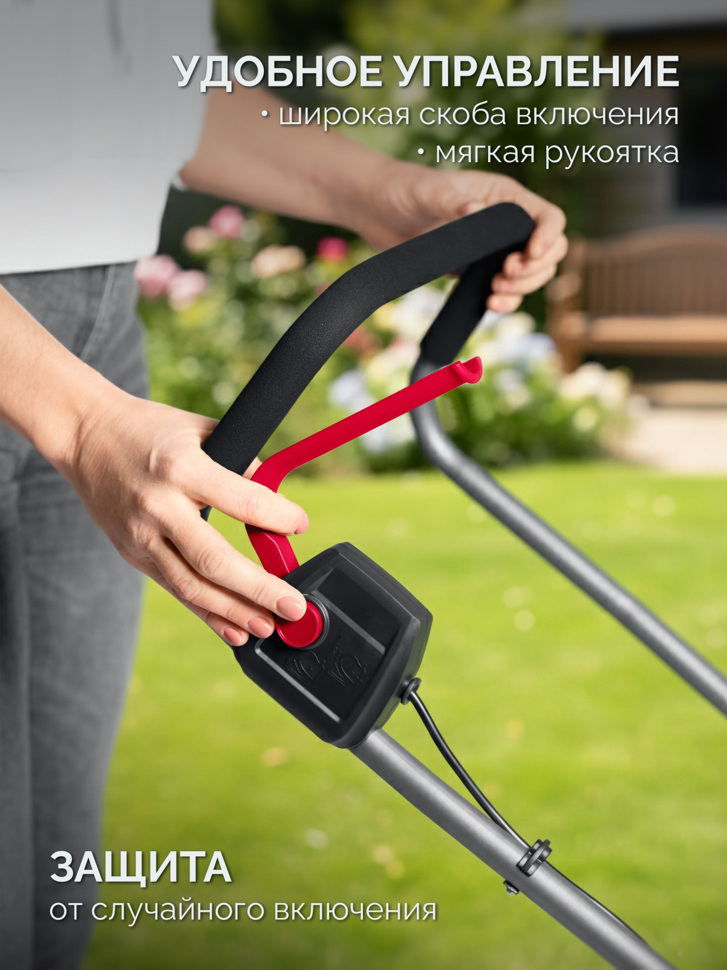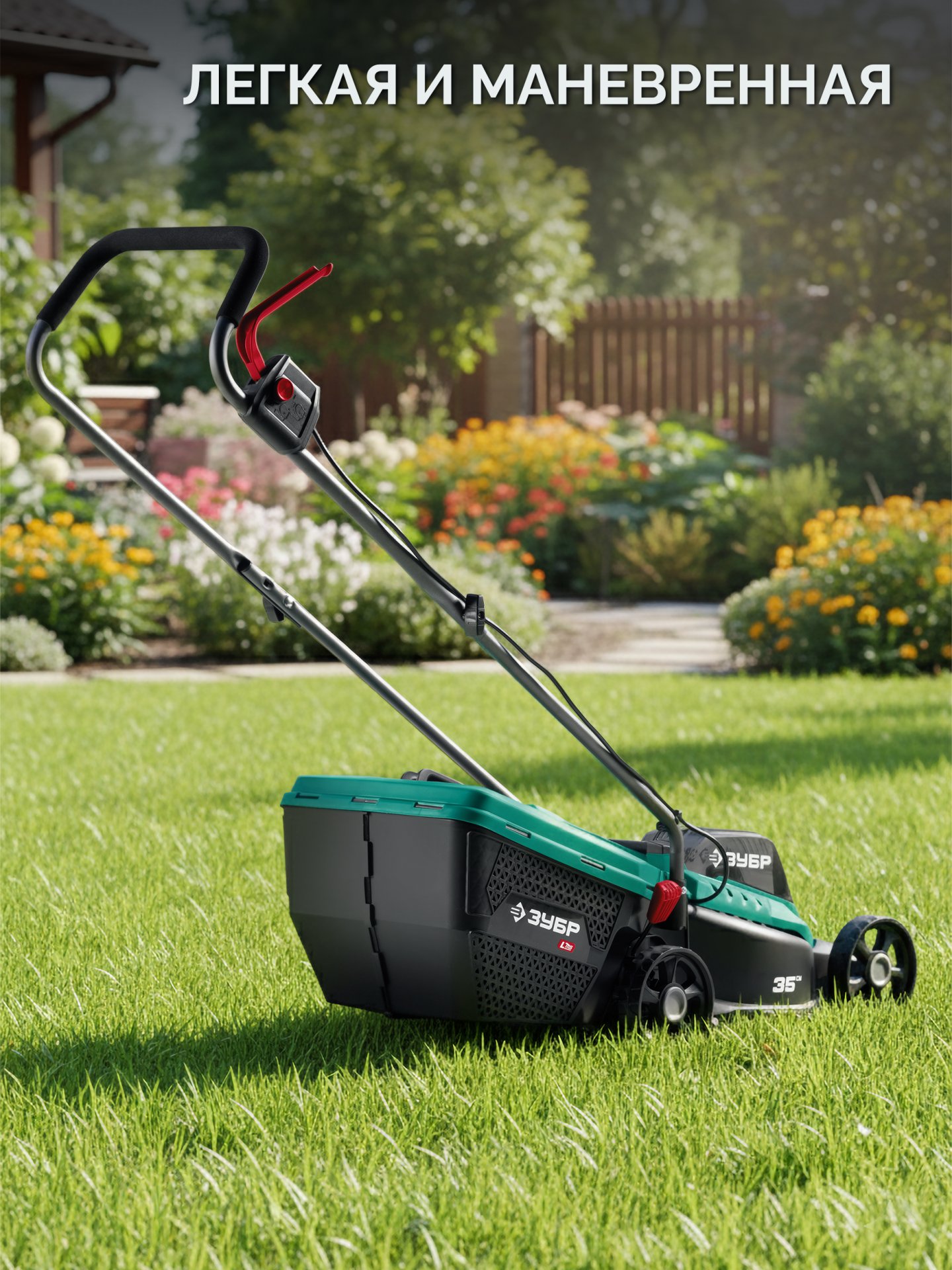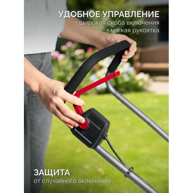 - Легкая и маневренная модель для кошения газона на любом участке,