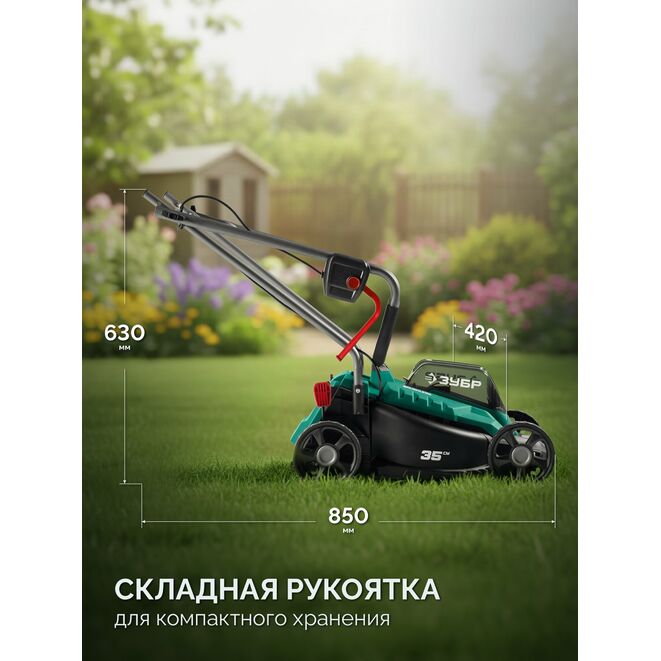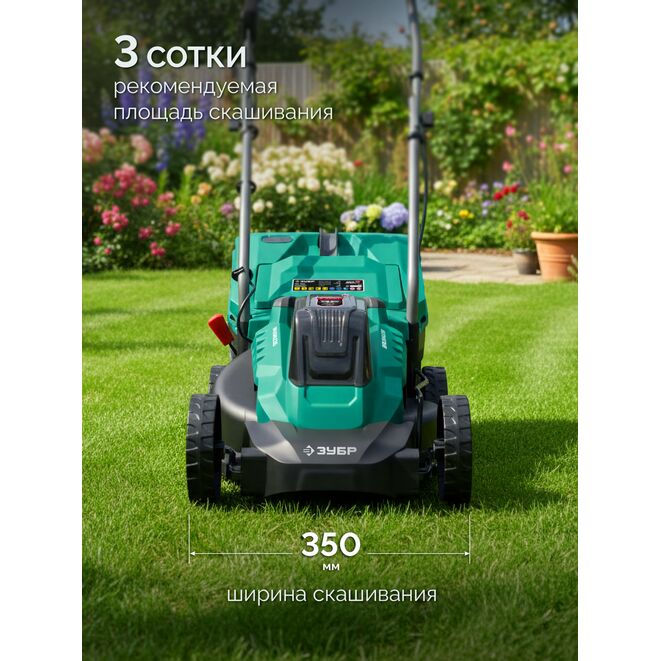 ЗУБР 20 В, 350 мм, без АКБ (LMS), газонокосилка аккумуляторная бесщеточная (ГКЛ-2035)
