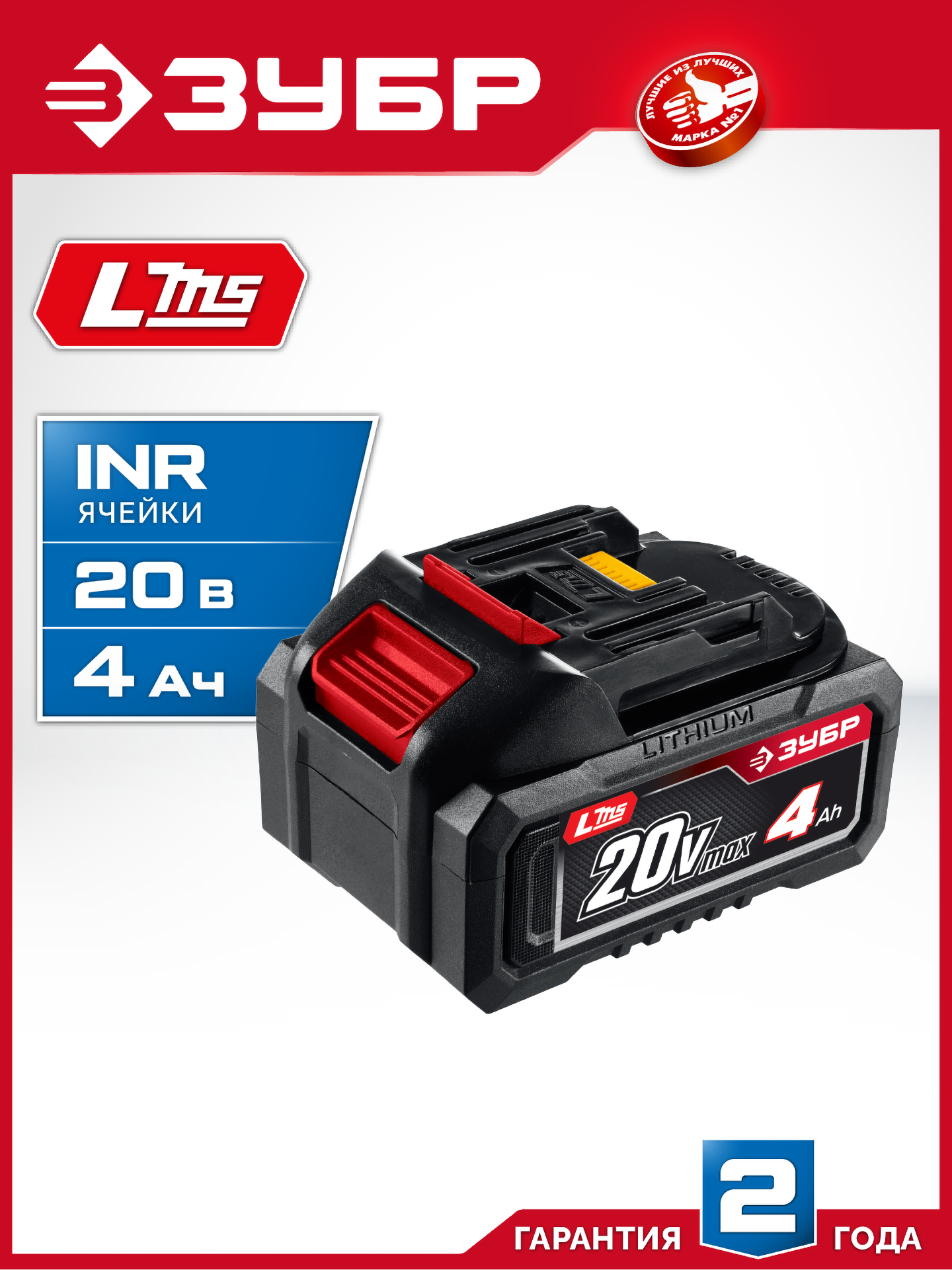 Принадлежности для ЗУБР 20 В, 4.0 А·ч, аккумулятор LMS (АКБ-20-4):