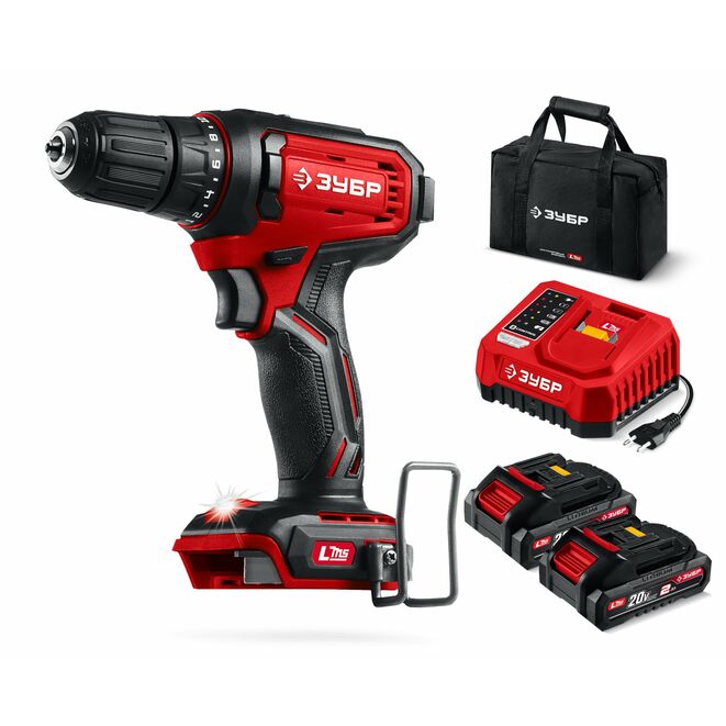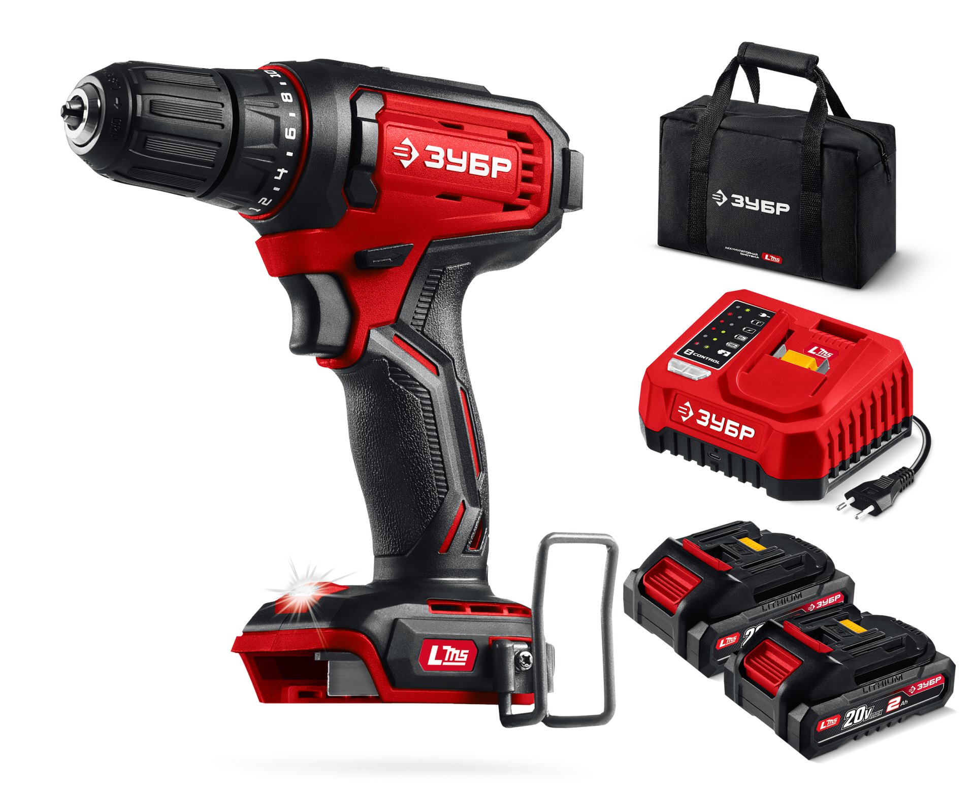 Принадлежности для ЗУБР 20 В, 40 Н·м, 2 АКБ LMS (2 А·ч), дрель-шуруповерт, сумка (ДШ-40-22):