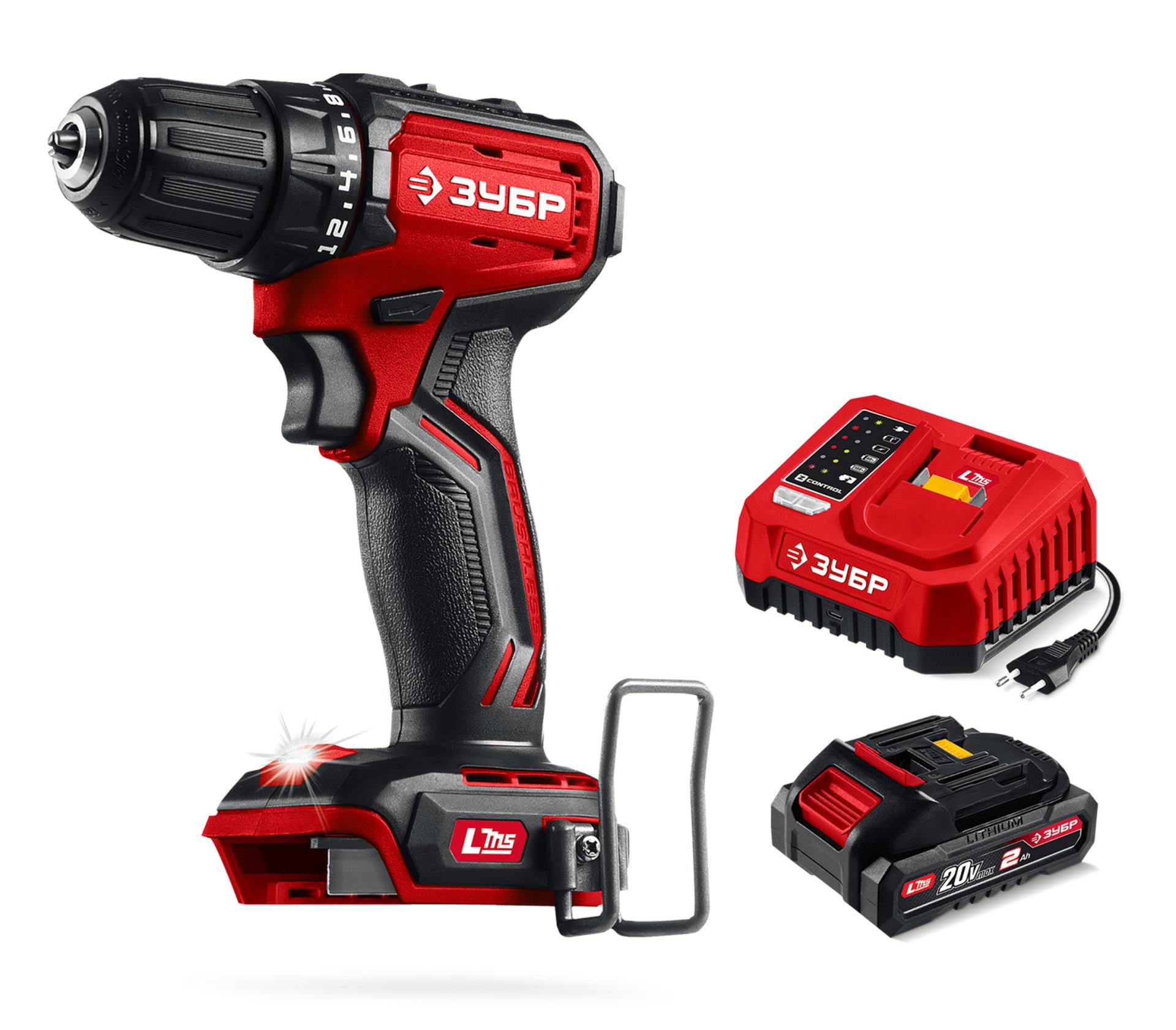 ЗУБР 20 В, 45 Н·м, 1 АКБ LMS (2 А·ч), бесщеточная дрель-шуруповерт (ДБ-45-21)