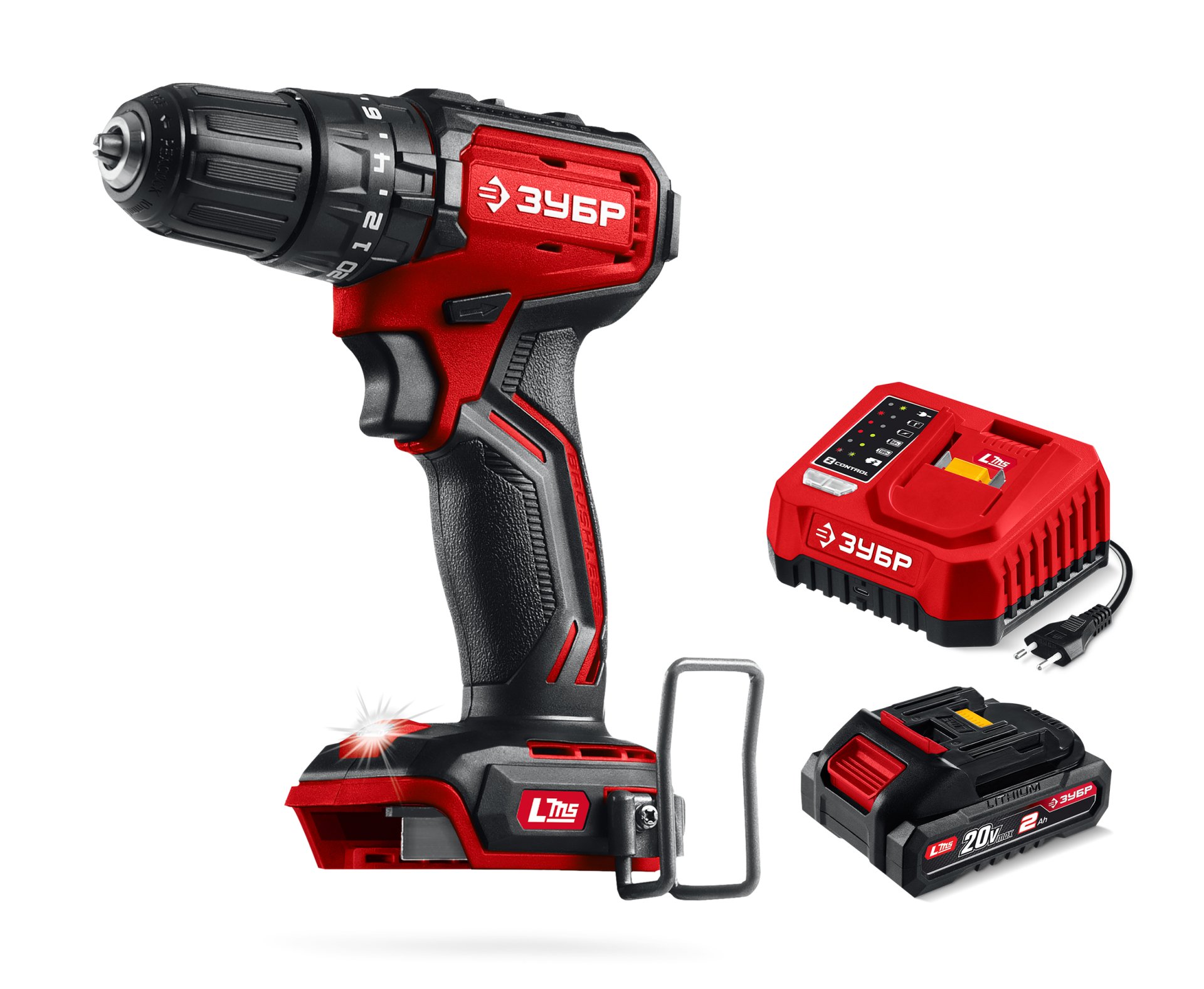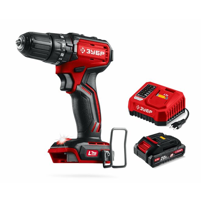Принадлежности для ЗУБР 20 В, 45 Н·м, 1 АКБ LMS (2 А·ч), бесщеточная ударная дрель-шуруповерт (ДБУ-45-21):