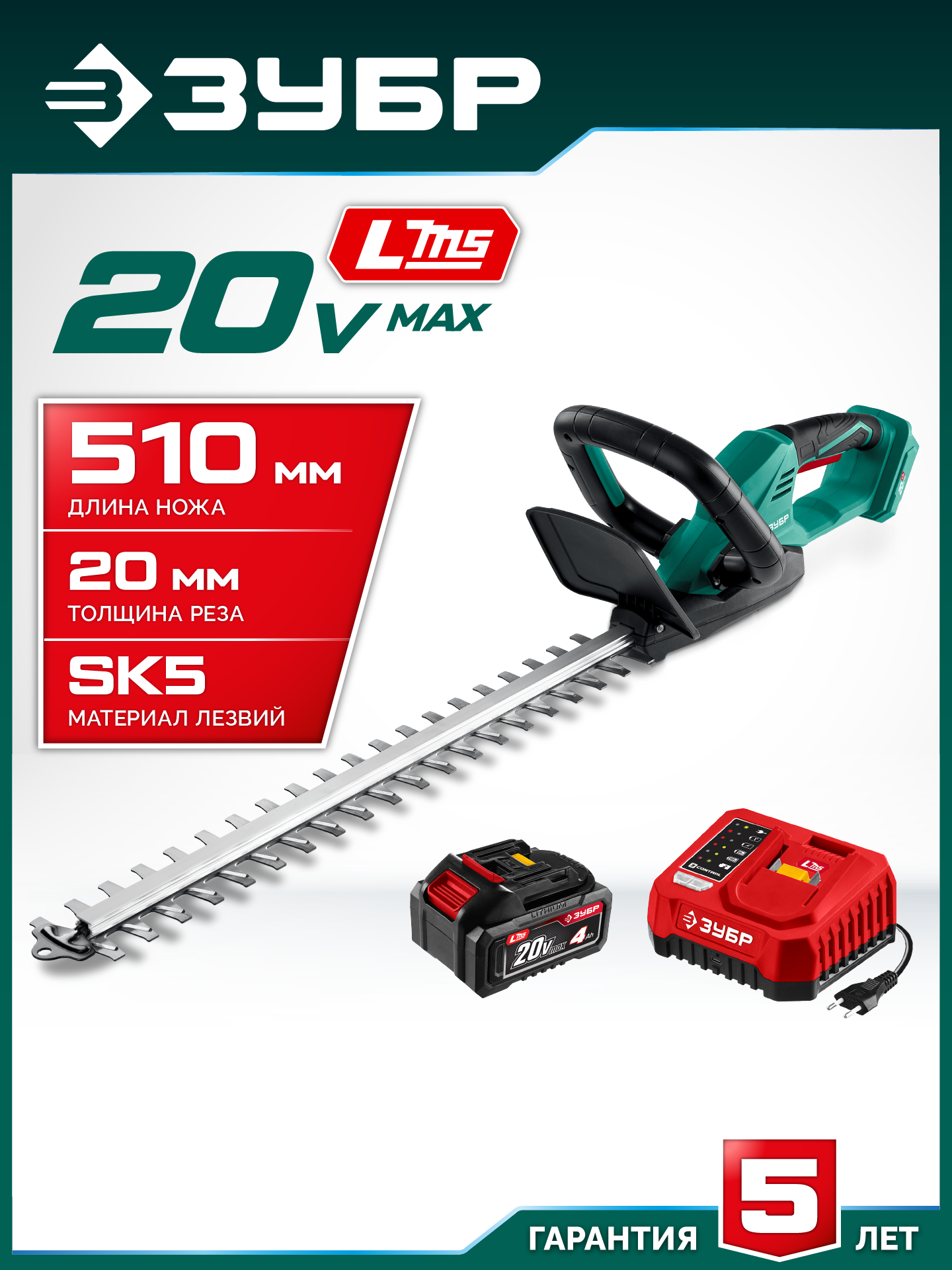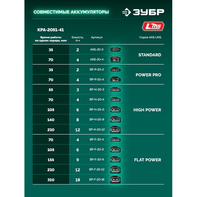 Принадлежности для ЗУБР 20 В, 510 мм, 1 АКБ LMS (4 Ач), кусторез аккумуляторный (КРА-2051-41):