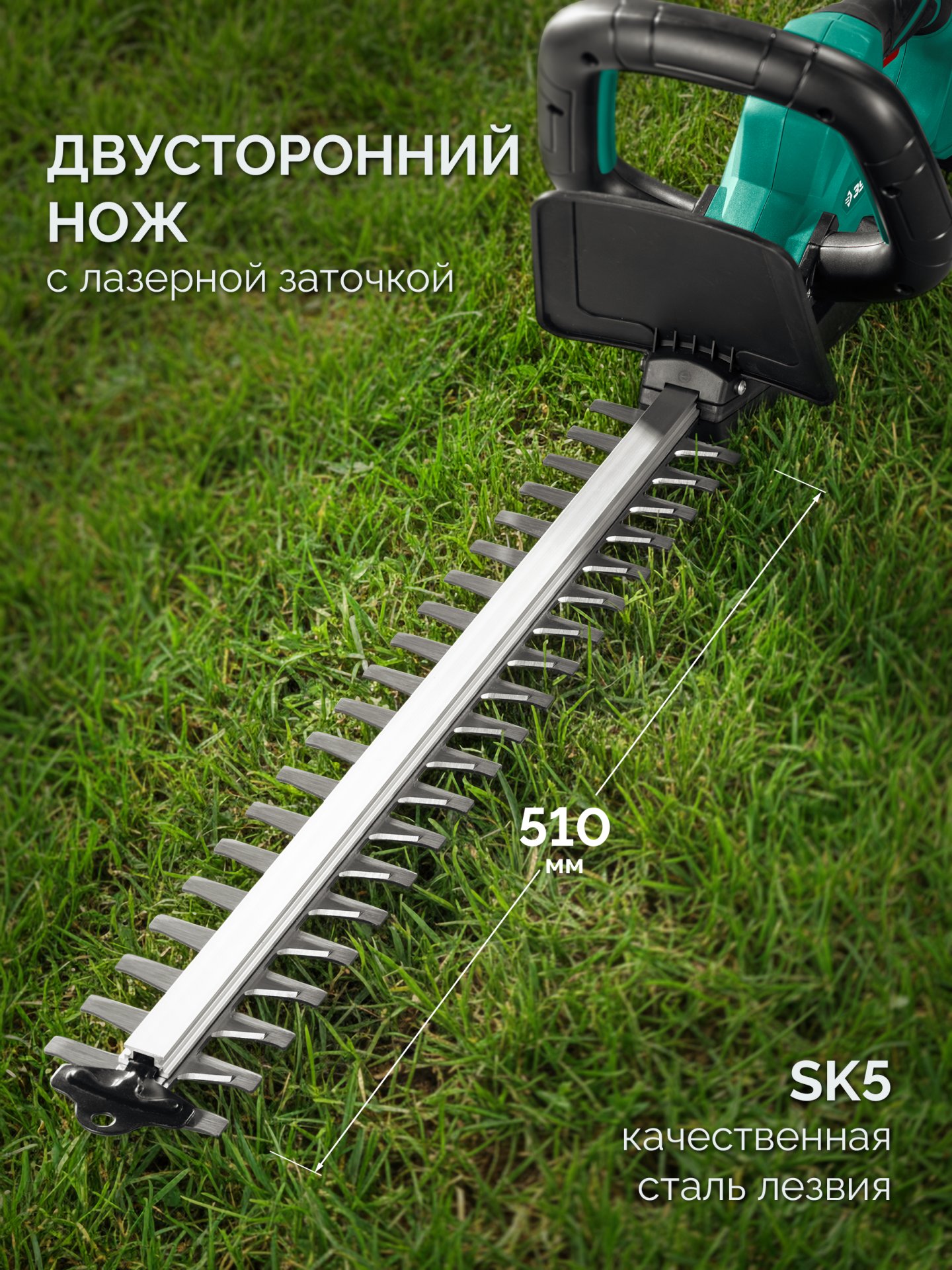 Аккумуляторный кусторез предназначен для ухода за живыми изгородями, стрижки кустарников и деревьев. Он может быть использован для выполнения как прямой, так и фигурной подрезки, превращая ваш сад в произведение искусства. Лезвия выполнены из японской стали SK5 и гарантируют быстрый рез и долгий срок службы.Применение
