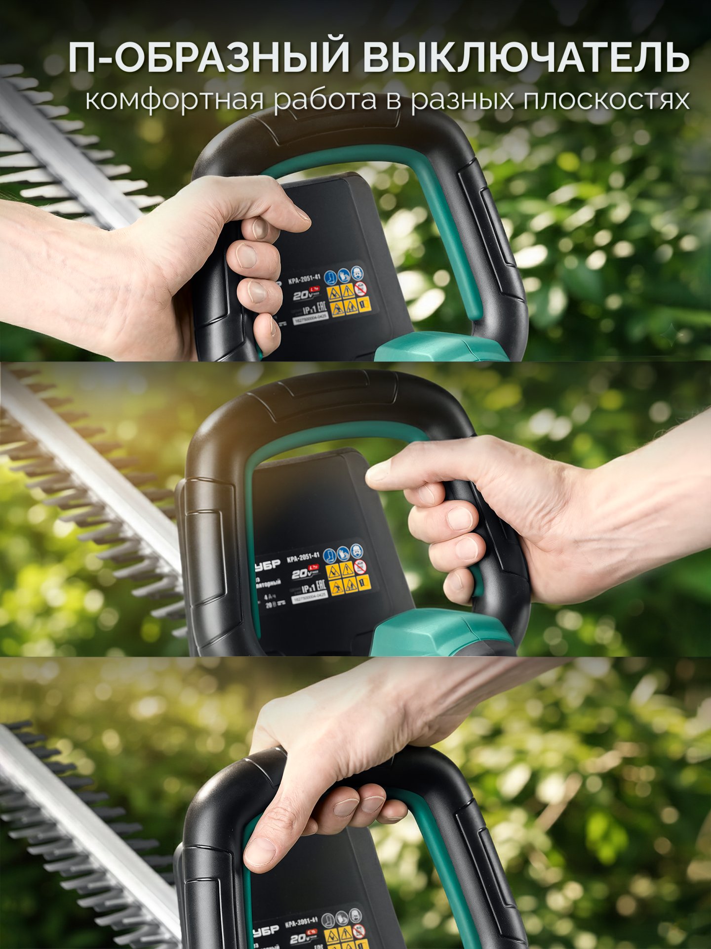 - 2 рукоятки с выключателями для удобства работы и защиты от случайного включения