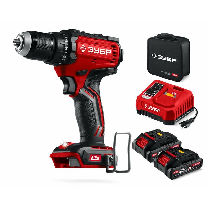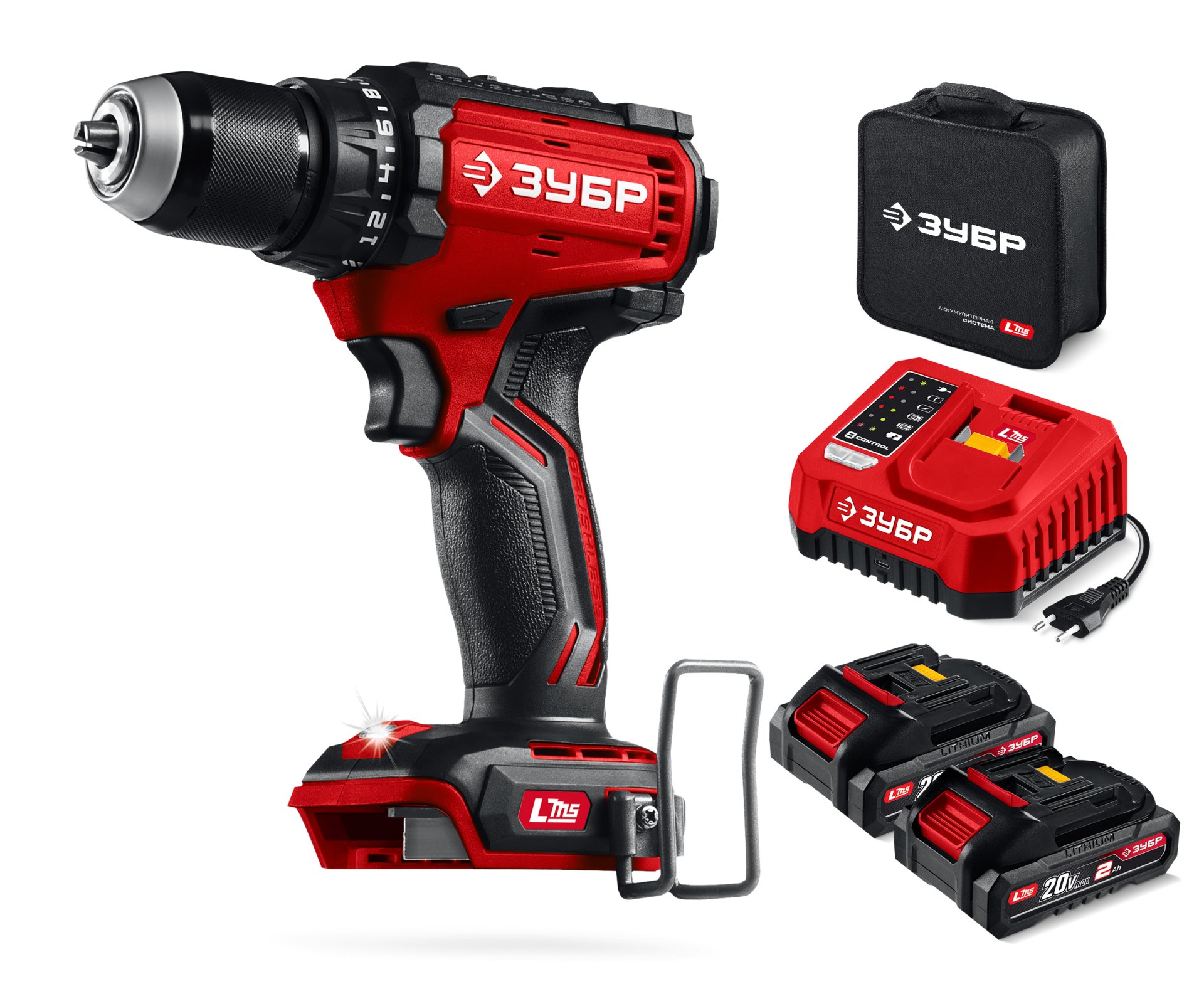 Принадлежности для ЗУБР 20 В, 65 Н·м, 2 АКБ LMS (2 А·ч), бесщеточная дрель-шуруповерт, сумка (ДБ-65-22):