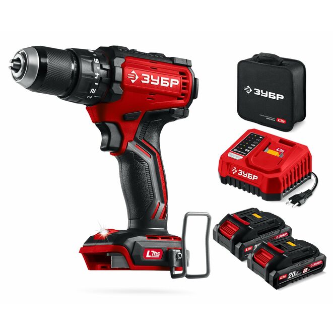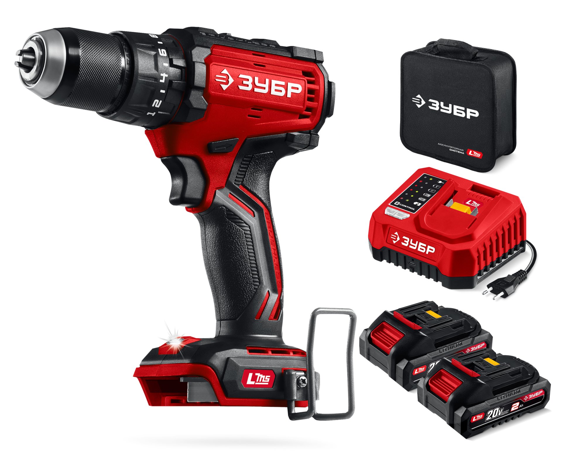 Принадлежности для ЗУБР 20 В, 65 Н·м, 2 АКБ LMS (2 А·ч), бесщеточная ударная дрель-шуруповерт, сумка (ДБУ-65-22):