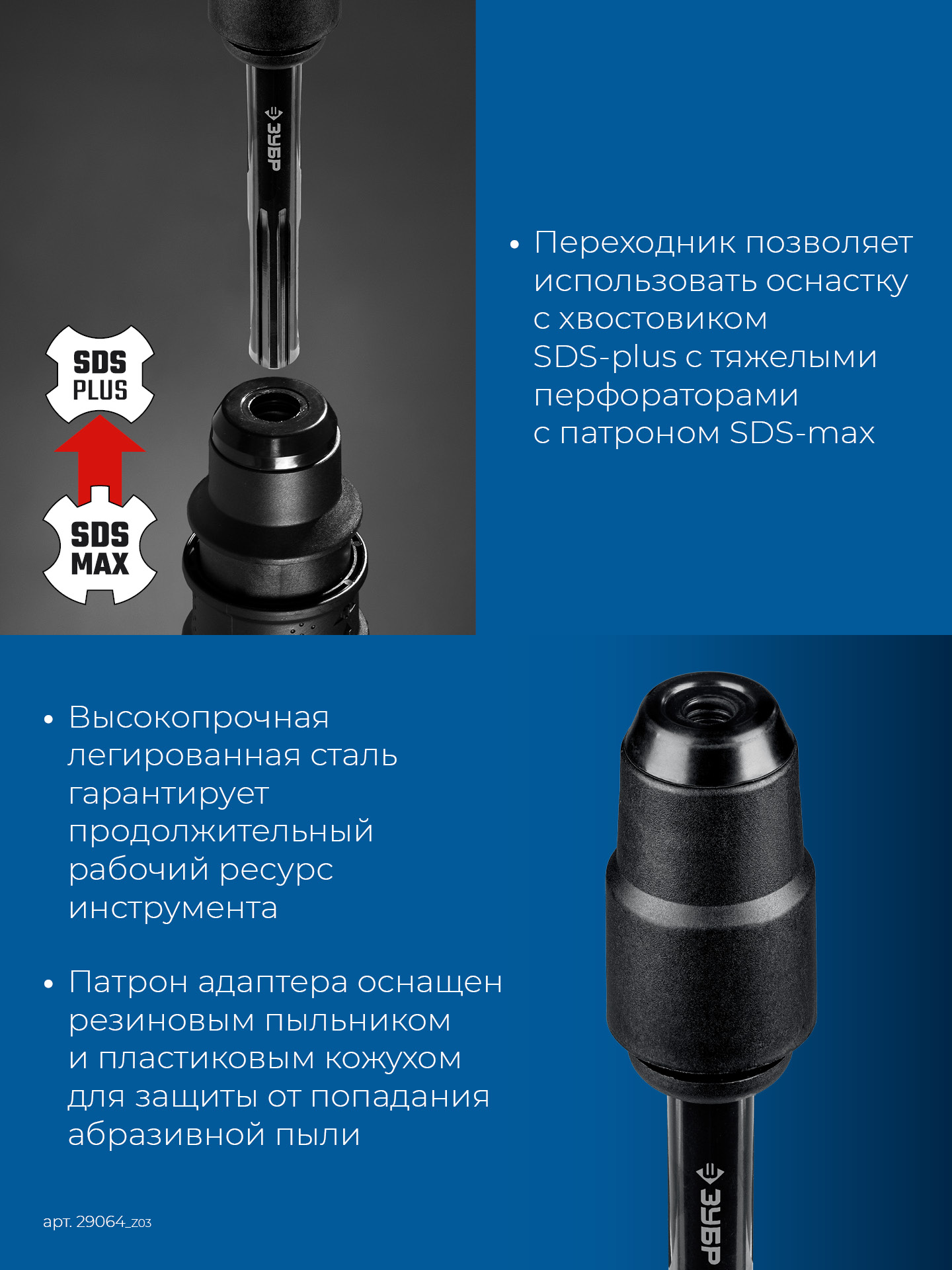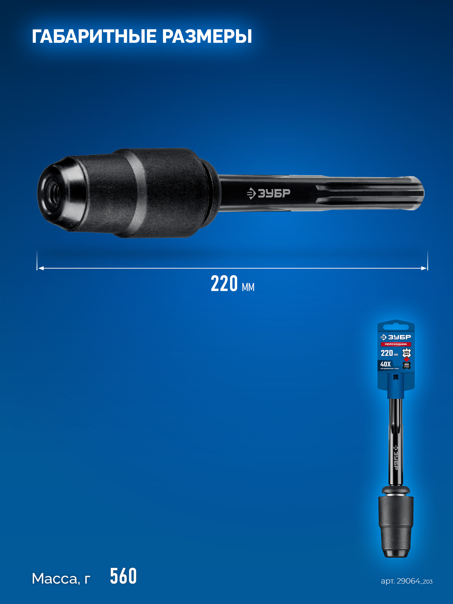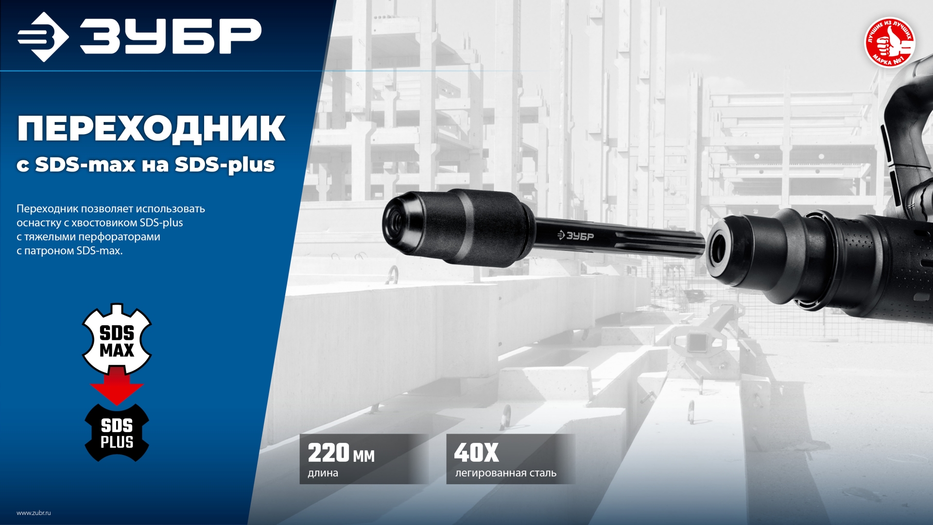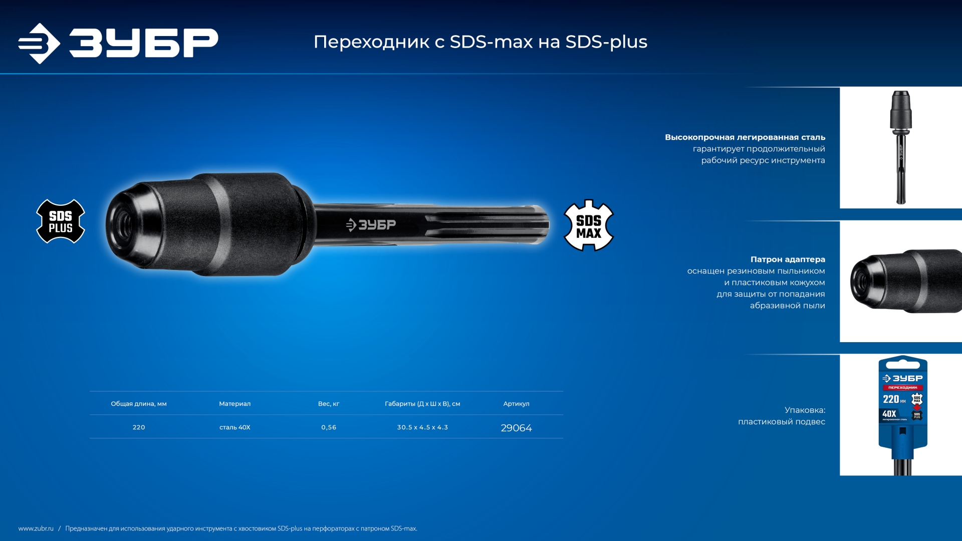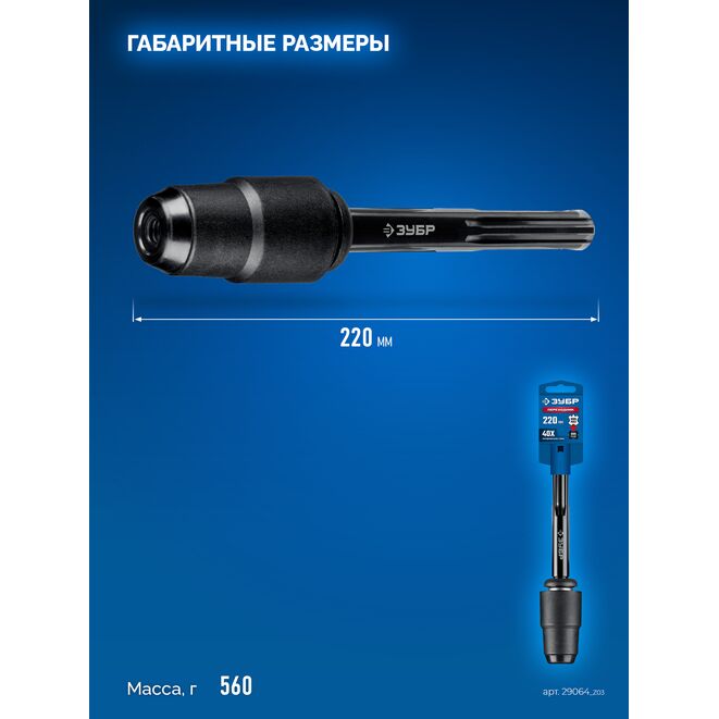 ЗУБР 220 мм, переходник с SDS-max на SDS-plus, Профессионал (29064_z03)