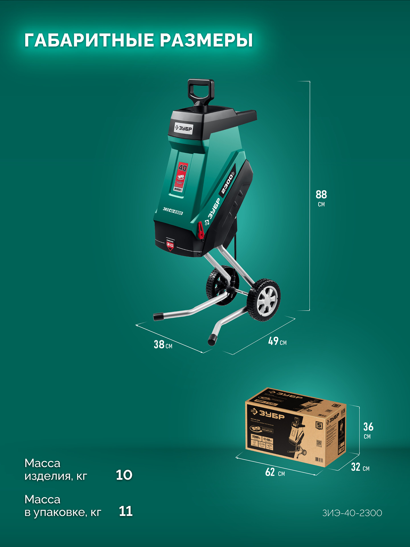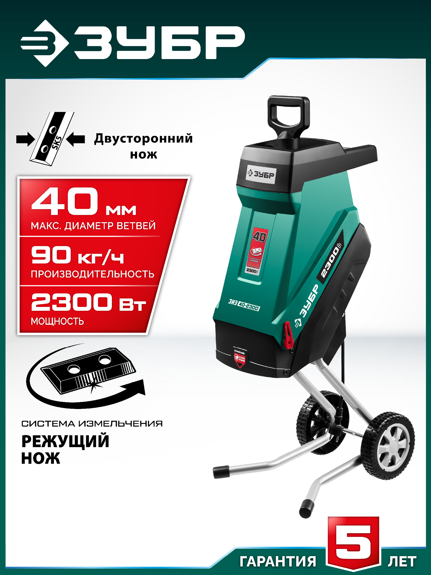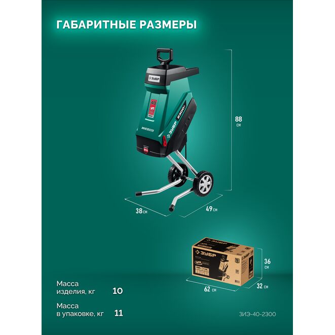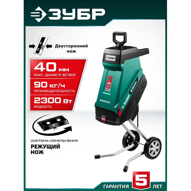 ЗУБР 2300 Вт, электрический садовый измельчитель (ЗИЭ-40-2300)