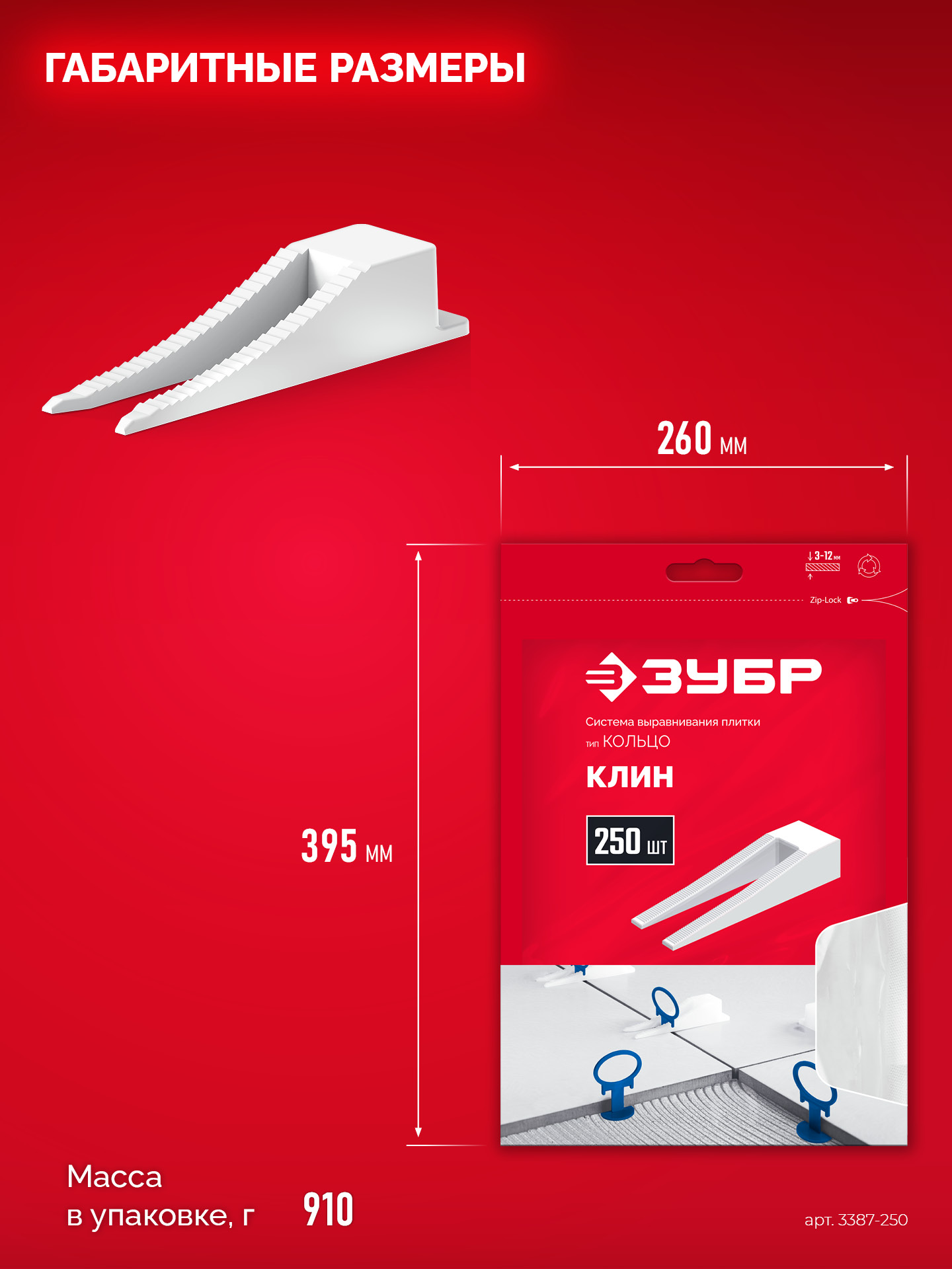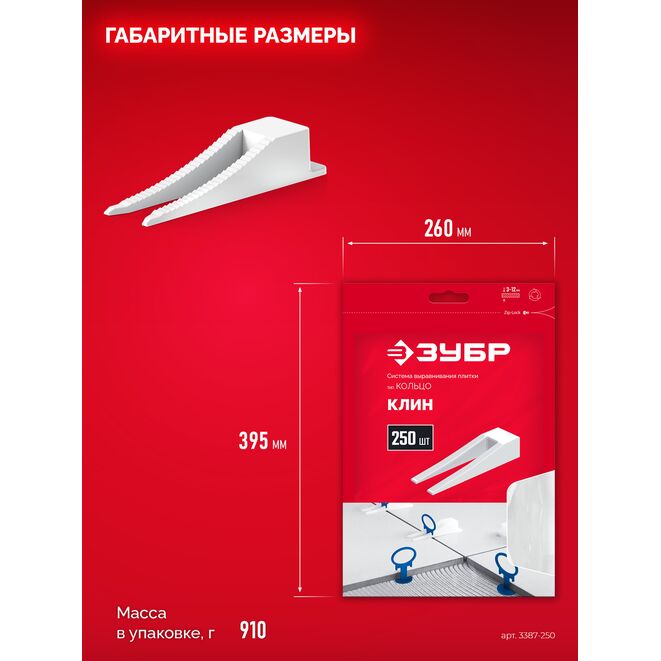 ЗУБР СВП клин 250 шт., Система выравнивания плитки, МАСТЕР (3387-250)