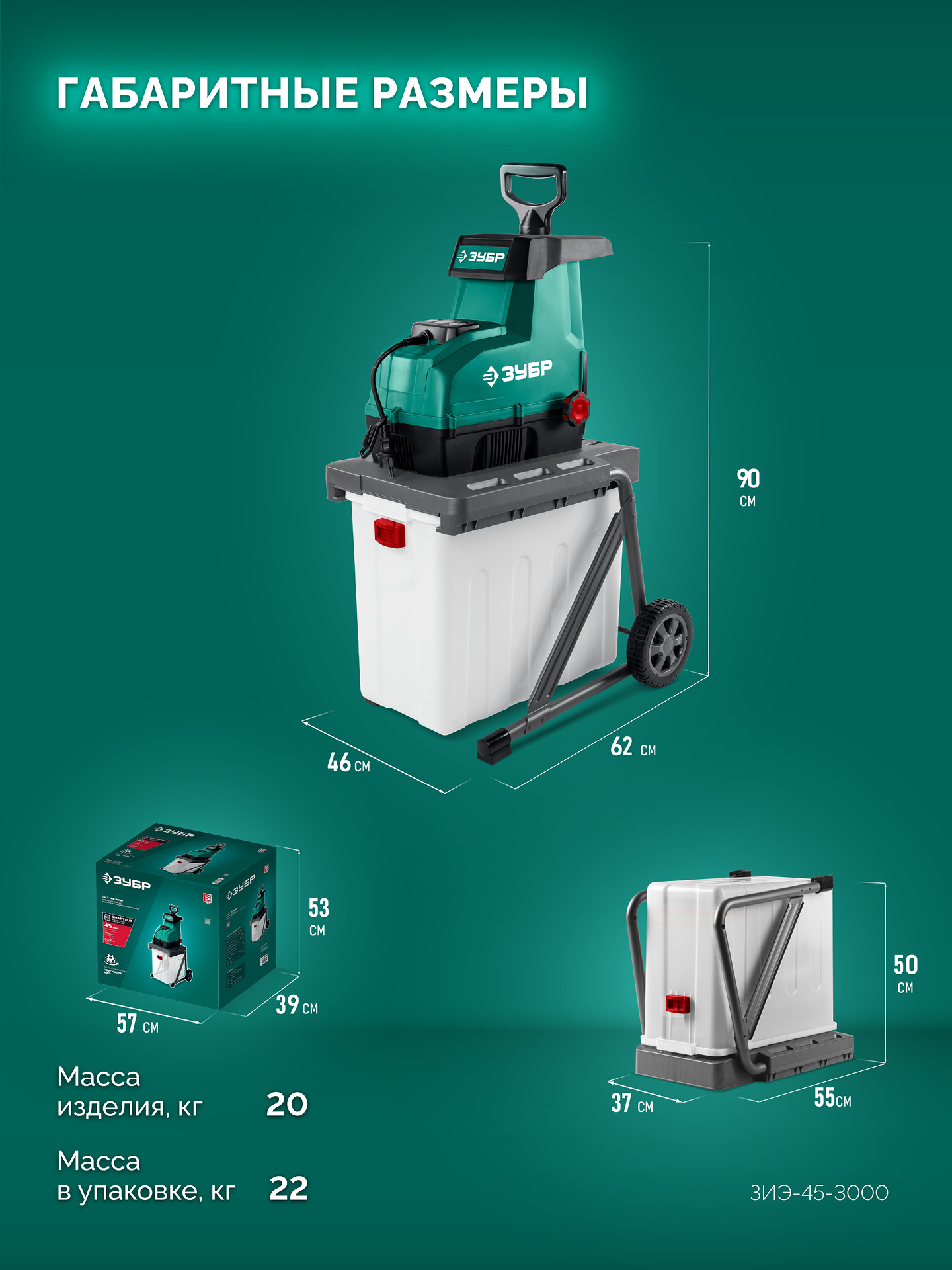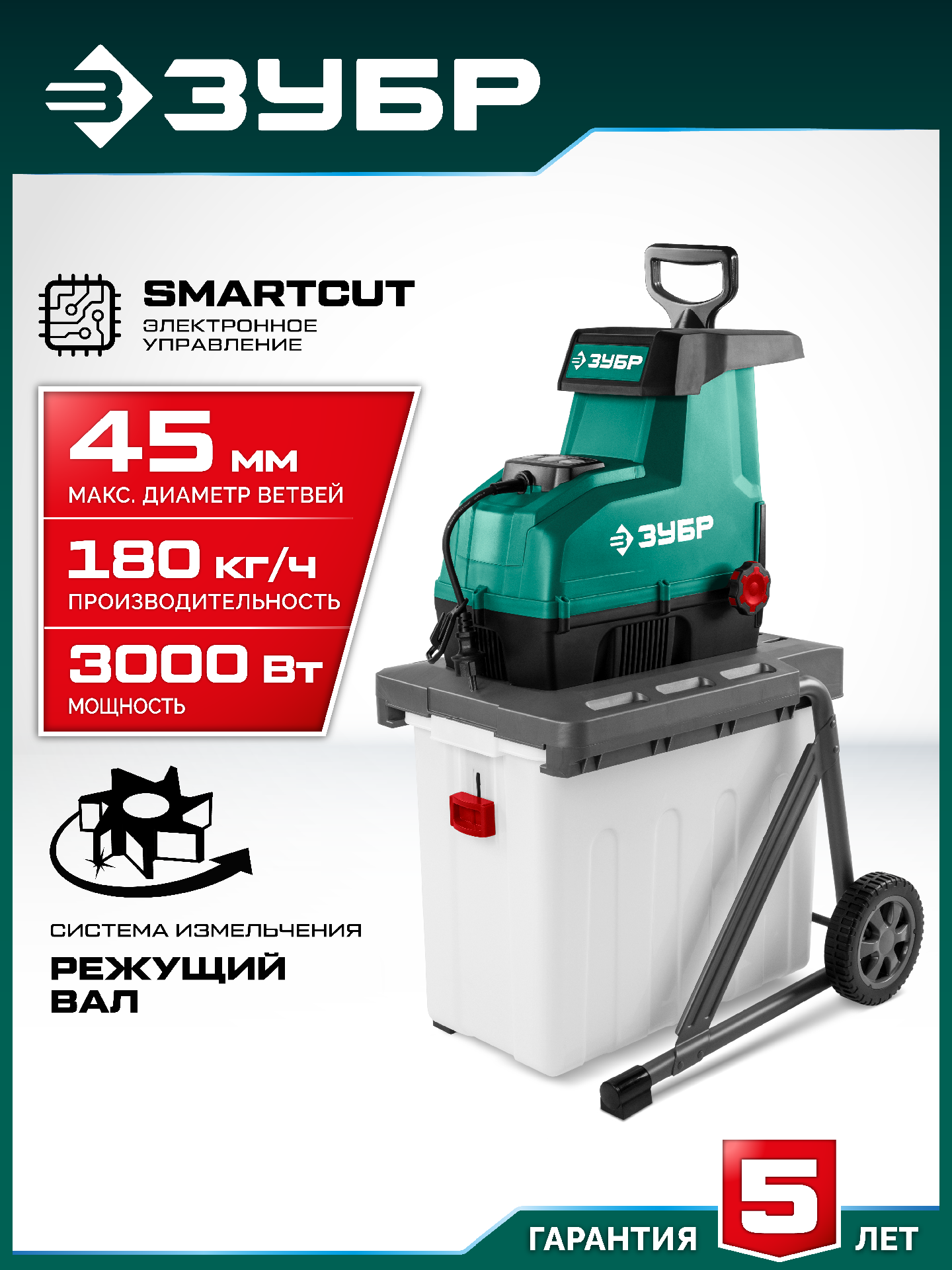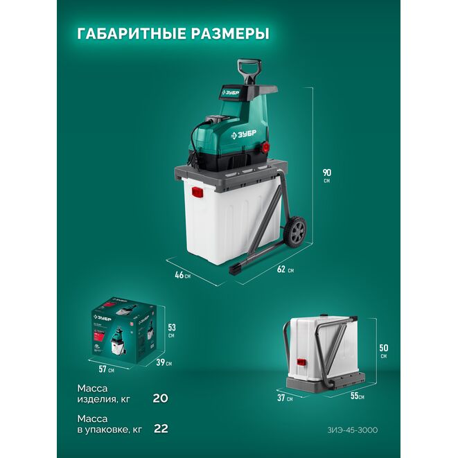 ЗУБР 3000 Вт, измельчитель садовый электрический (ЗИЭ-45-3000)