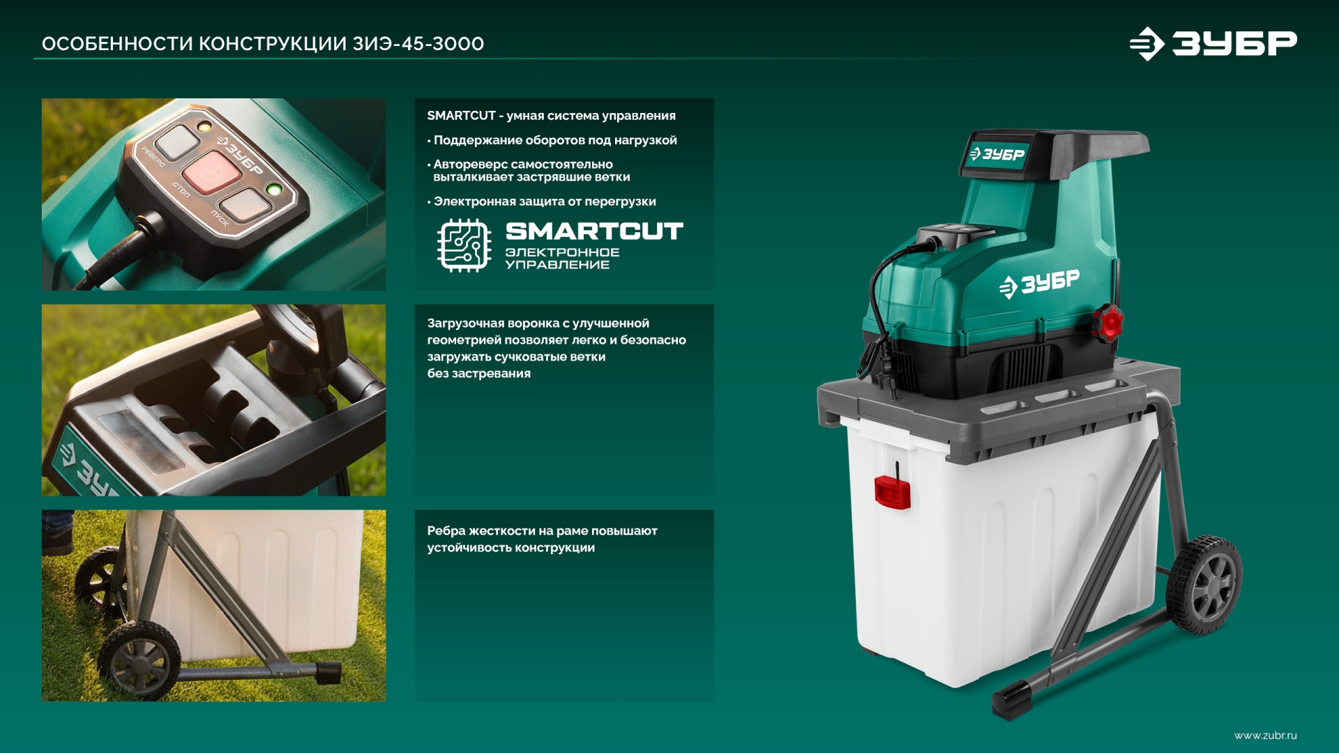 Мощный, бесшумный и высокопроизводительный измельчитель ЗУБР станет незаменимым помощником на любом участке. Умная система управления автоматически увеличивает обороты при высокой нагрузке и включает реверс в случае застревания ветки, а усовершенствованное приемное отверстие облегчает процесс загрузки. Задача переработки скошенной, собранной или спиленной растительности больше не будет вызывать трудностей. Просто подвиньте измельчитель поближе, и вы даже не заметите, как работа будет завершена.Применение