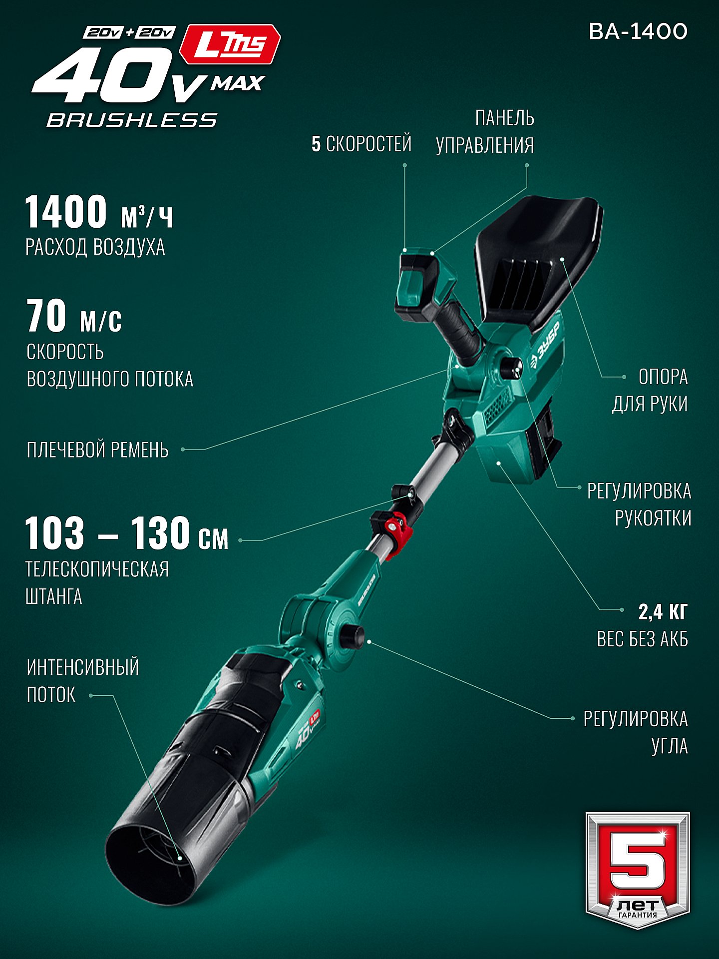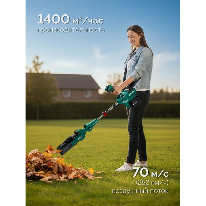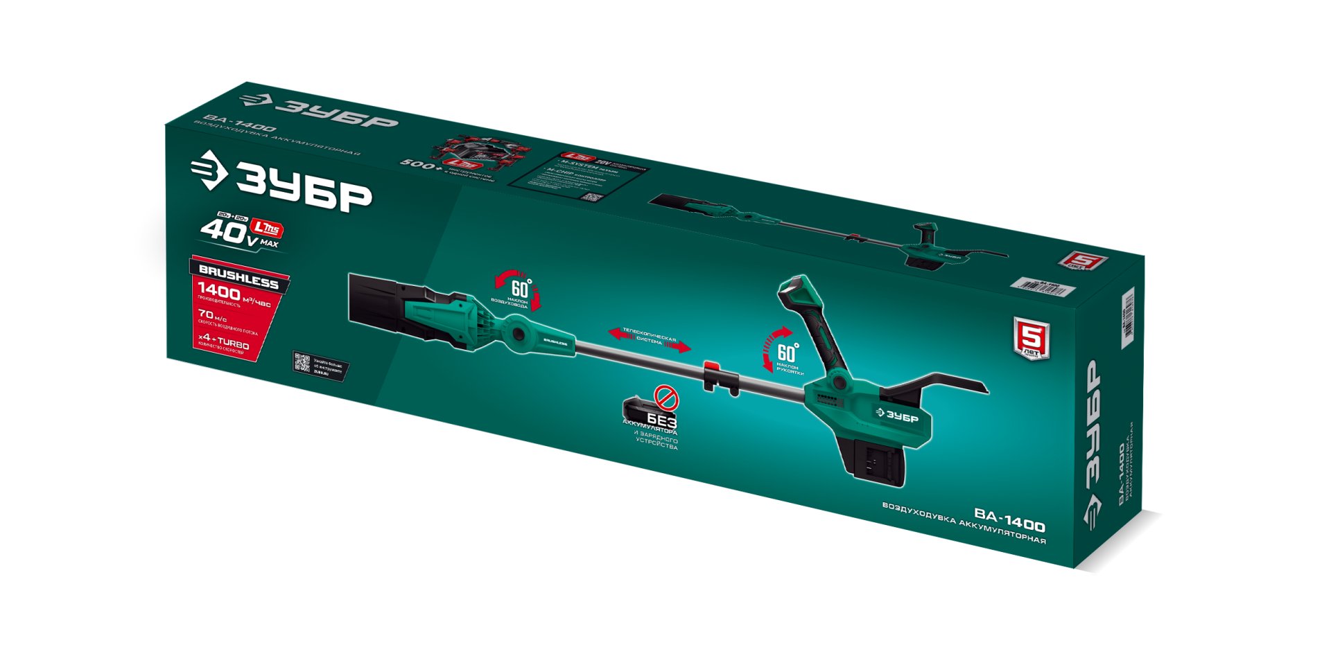 ЗУБР 40 В (2x20В), 1400 м3/ч, без АКБ (LMS), воздуходувка аккумуляторная (ВА-1400)