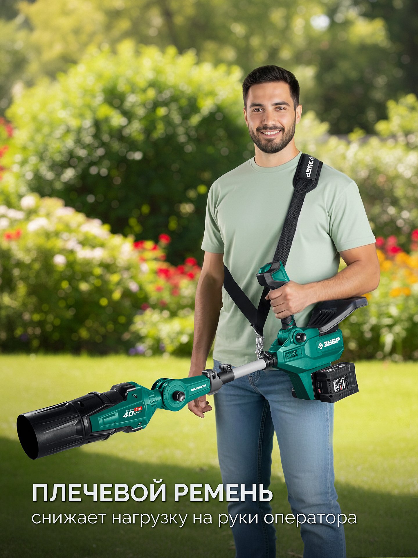 Входящий в комплект поставки плечевой ремень помогает носить воздуходувку длительное время без дискомфорта и усталости.