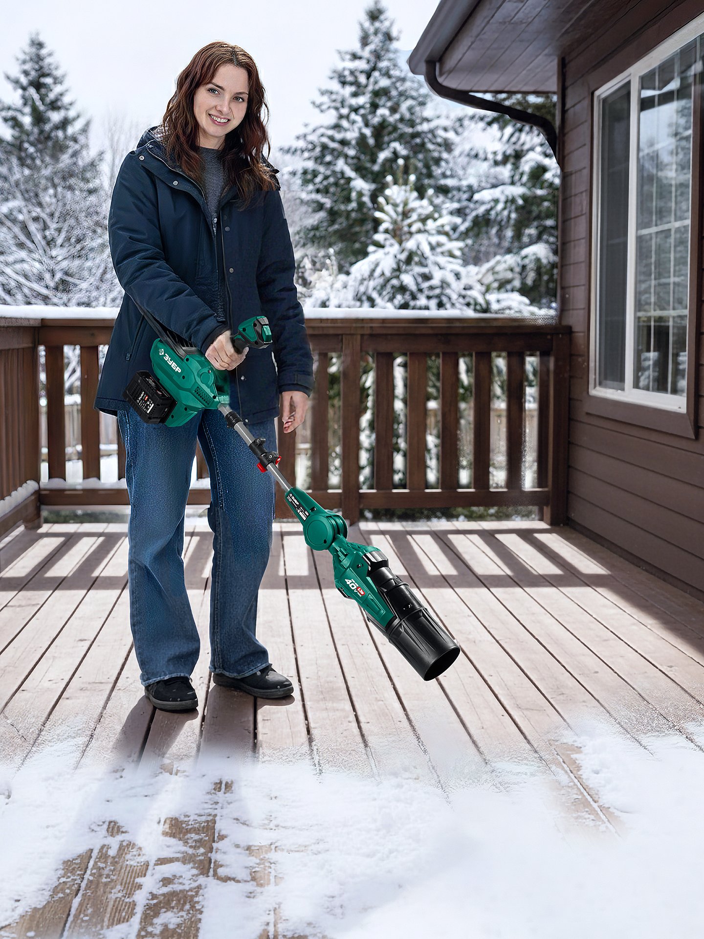 Мощная аккумуляторная воздуходувка с телескопической штангой легко справляется с уборкой больших участков от листьев и мусора. Надежный, высокопроизводительный и экономичный BRUSHLESS двигатель с внешним ротором, мощная турбина и высокоскоростной TURBO-режим помогают эффективной и быстрой работе. Регулировка угла обдува, длины штанги и наклона рукоятки позволяет пользователю адаптировать воздуходувку под конкретные задачи и условия работы, обеспечивая комфорт и эффективность при использовании.Применение