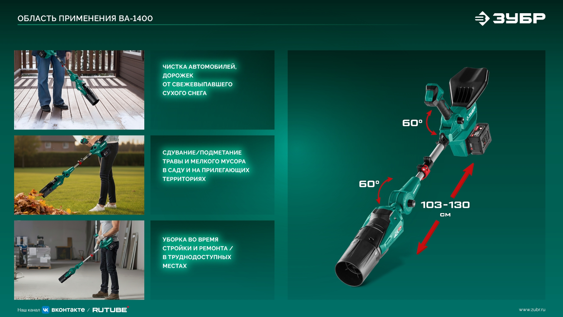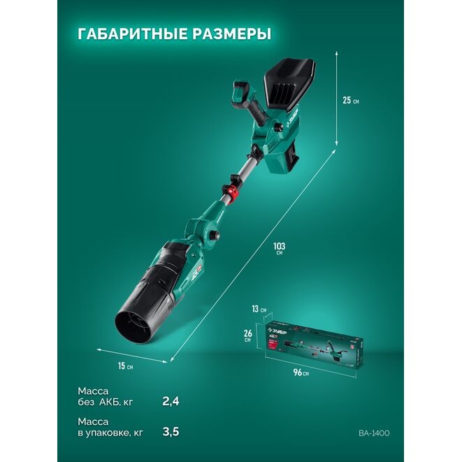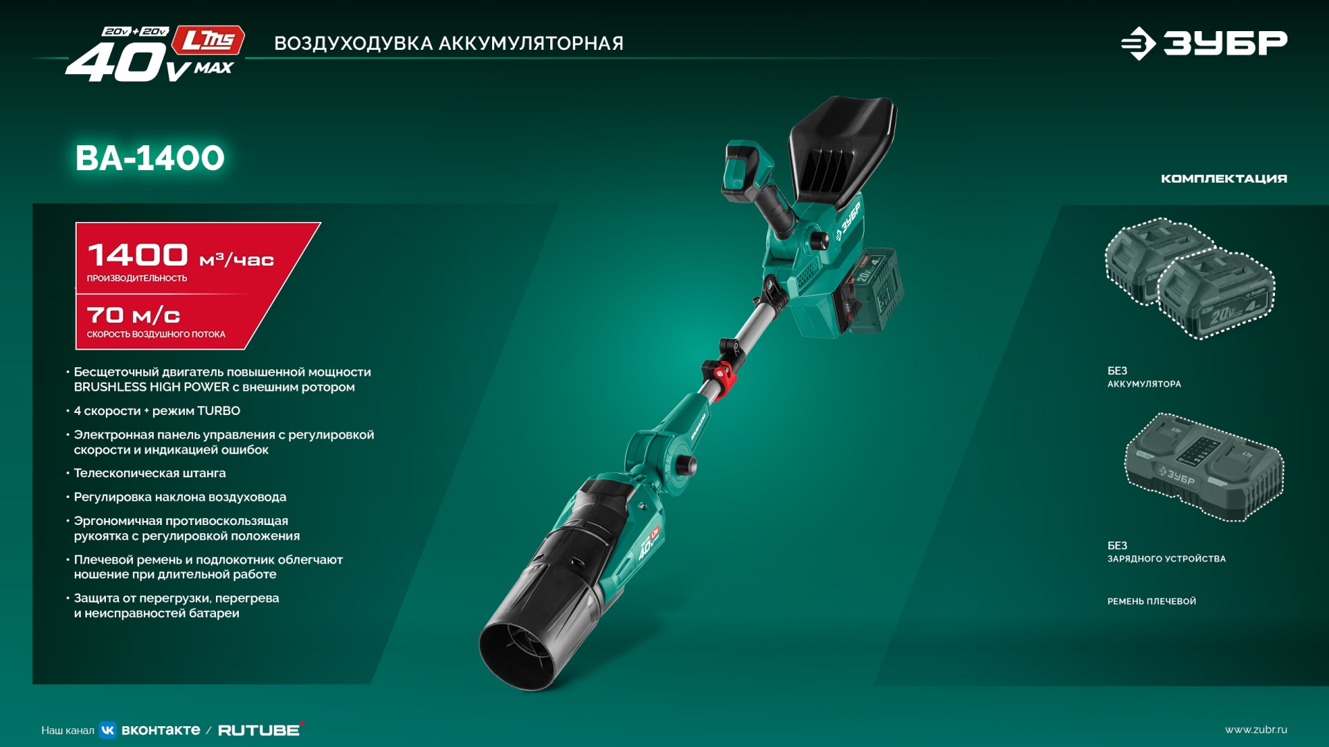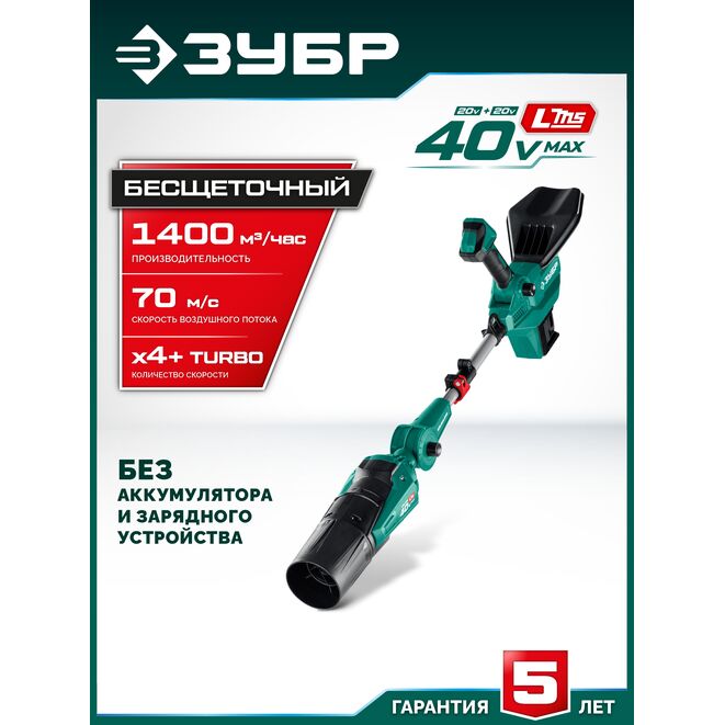 Принадлежности для ЗУБР 40 В (2x20В), 1400 м3/ч, без АКБ (LMS), воздуходувка аккумуляторная (ВА-1400):