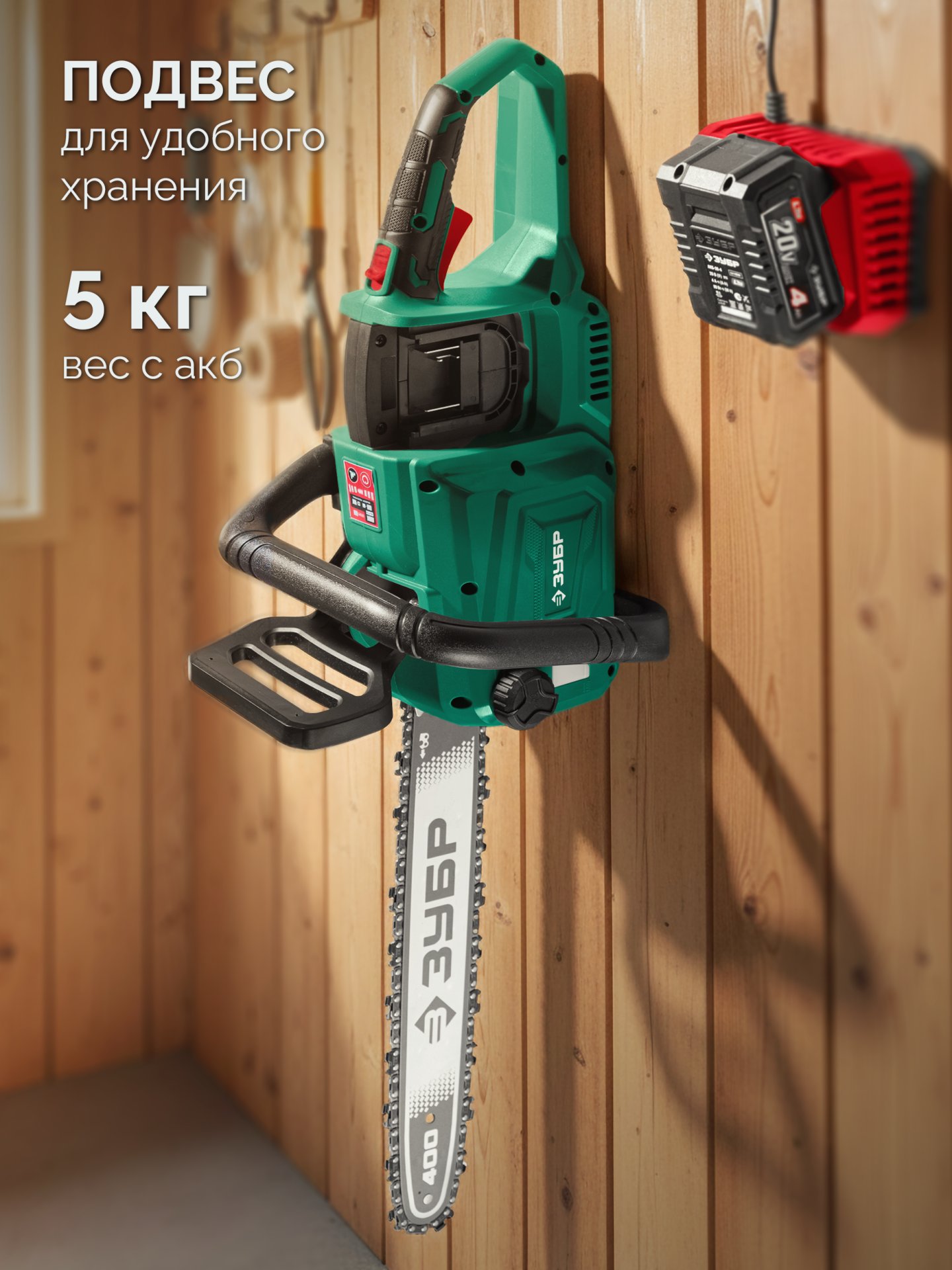 Принадлежности для ЗУБР 40 В, (2x20В), 400 мм шина, без АКБ (LMS), пила цепная аккумуляторная (ПЦБ-4040):