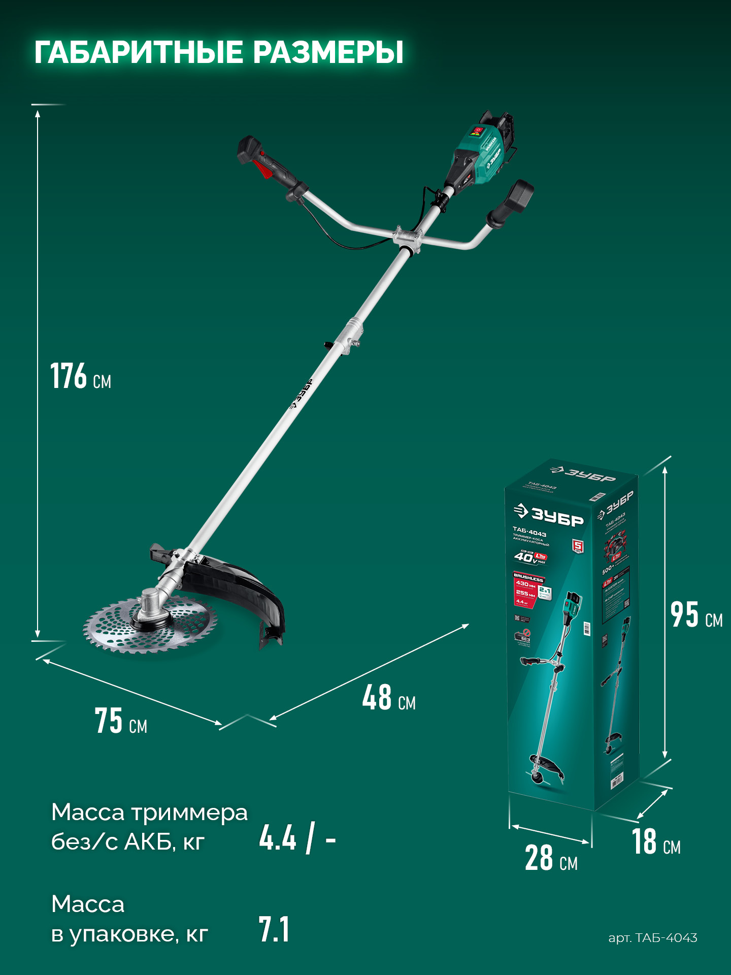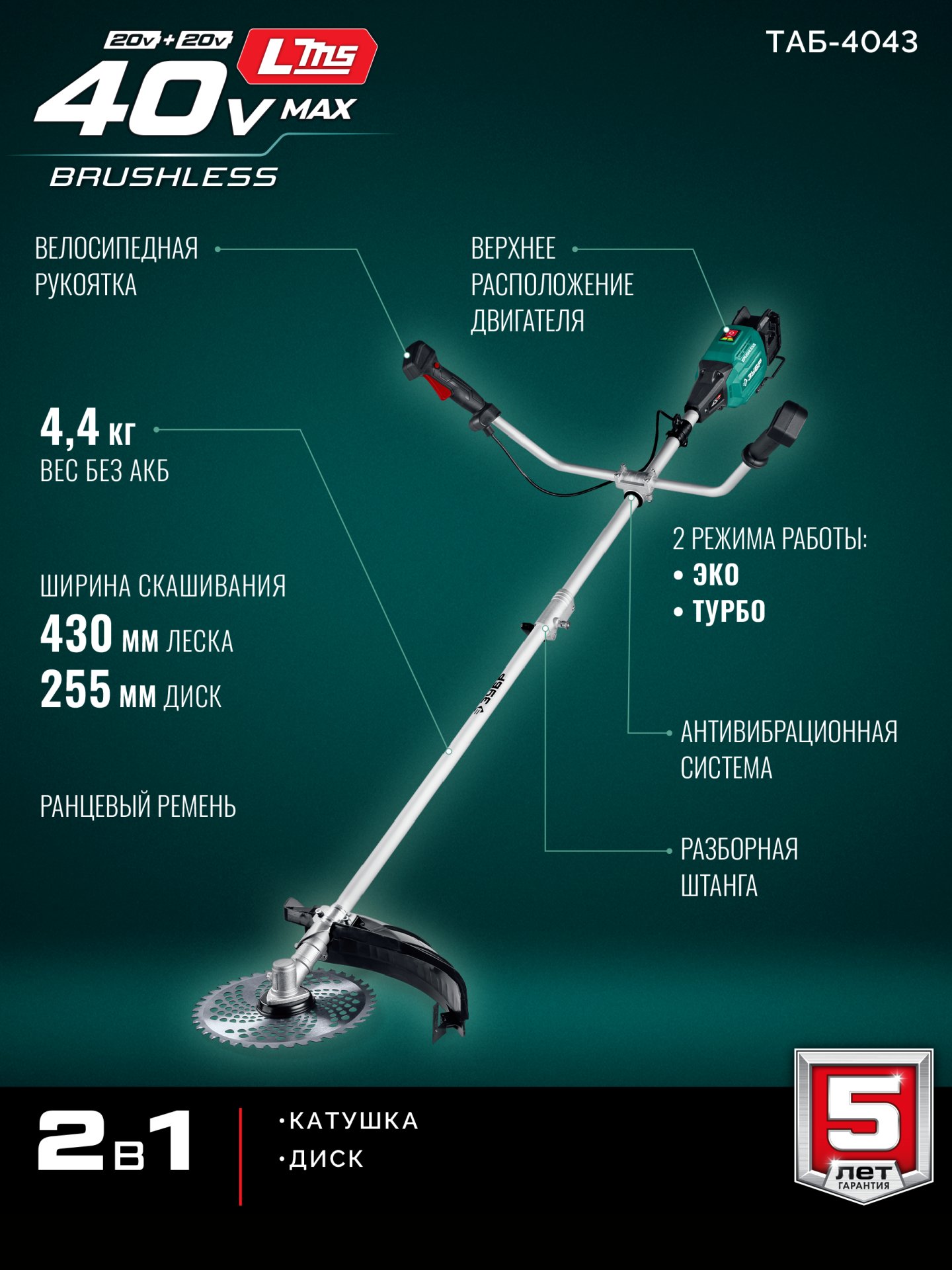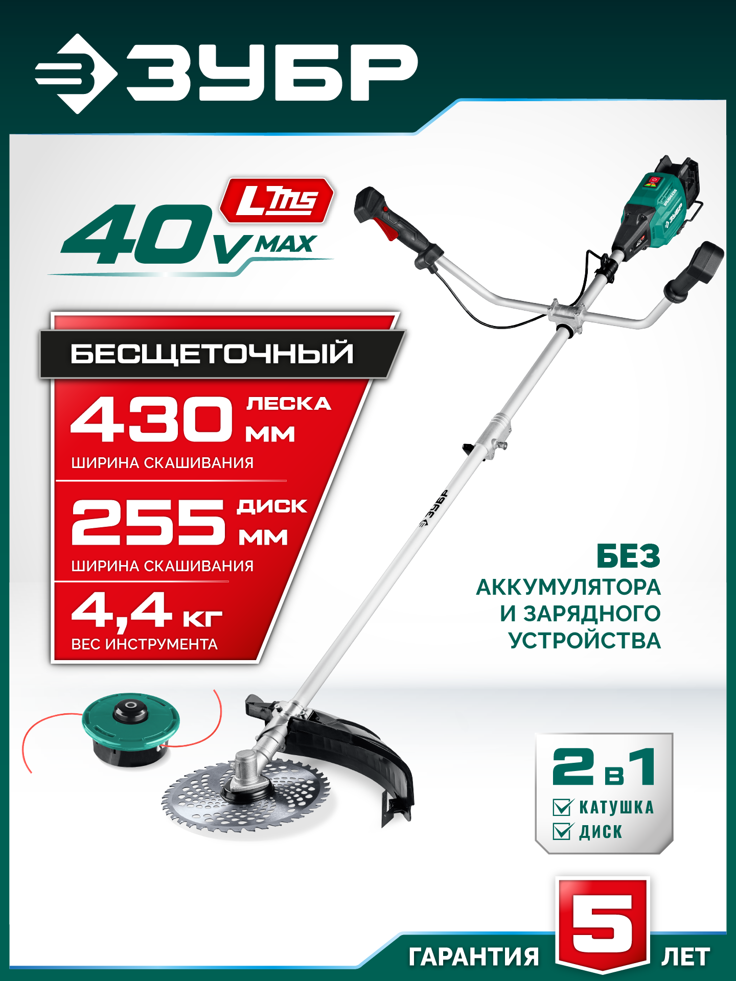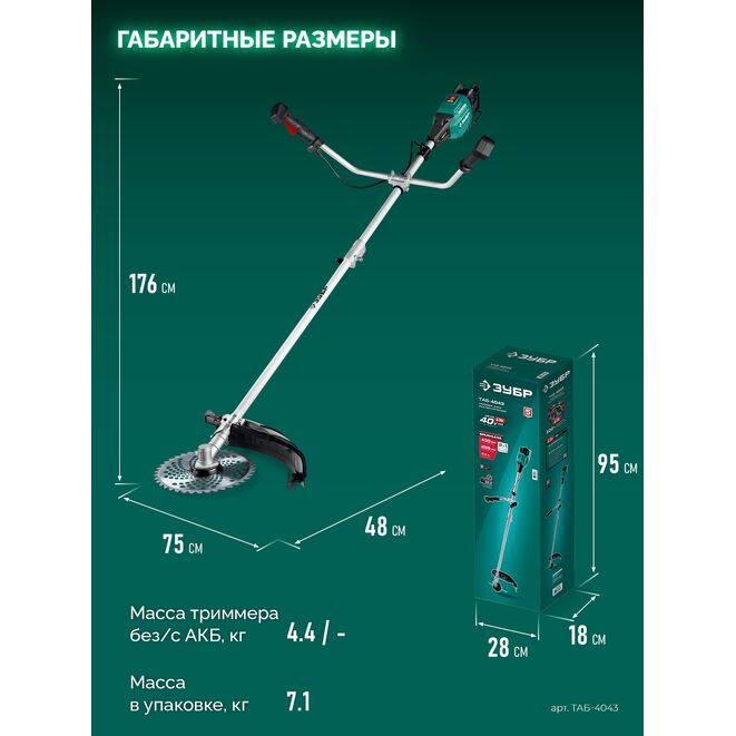Принадлежности для ЗУБР 40 В (2x20В), 430 мм, без АКБ (LMS), триммер-коса аккумуляторный бесщеточный (ТАБ-4043):