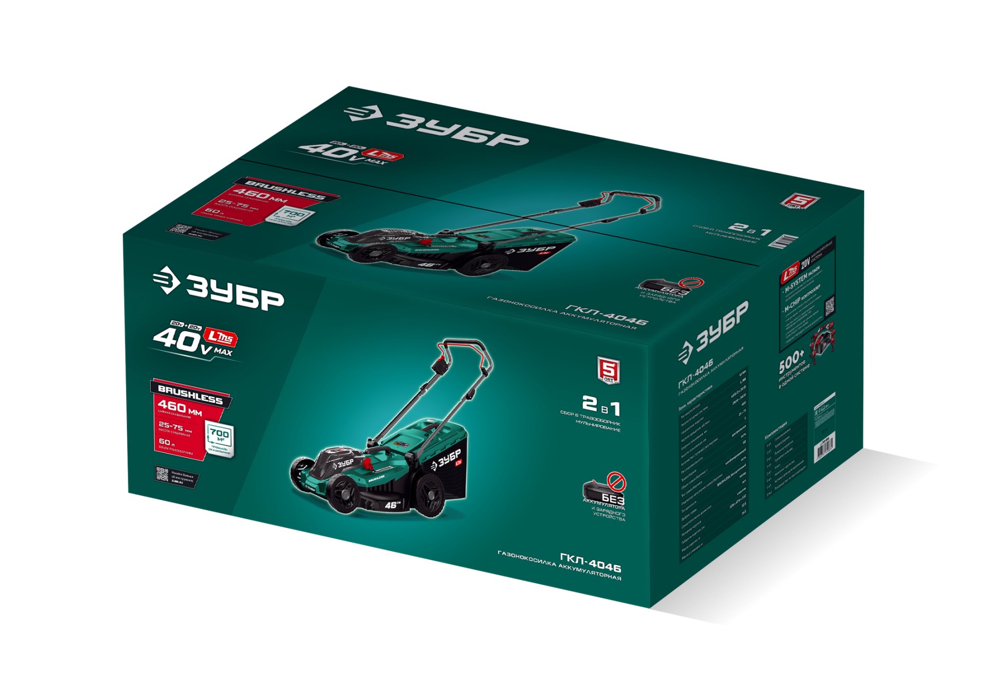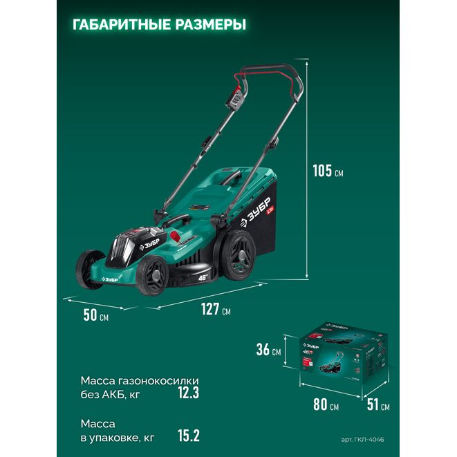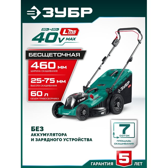Принадлежности для ЗУБР 40 В (2x20В), 460 мм, без АКБ (LMS), газонокосилка аккумуляторная бесщеточная (ГКЛ-4046):