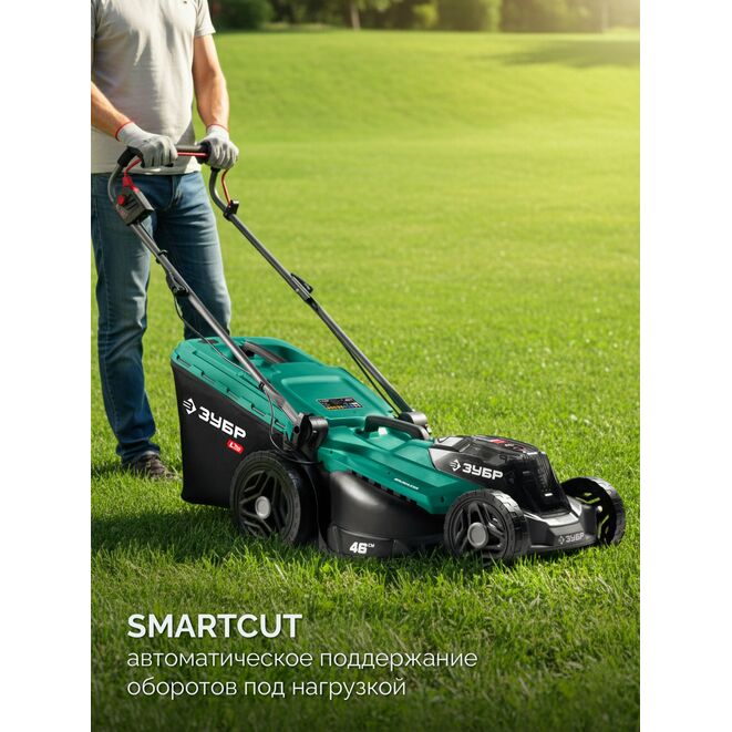 Современная аккумуляторная газонокосилка ЗУБР сделает процесс стрижки травы более удобным и эффективным. Забудьте о проводах, шуме и выхлопах – теперь вы можете наслаждаться процессом ухода за газоном в полной тишине и комфорте.Эта мощная и универсальная модель отлично подходит для пользователей, которые ищут баланс между производительностью и маневренностью. С её оптимальным весом и интуитивно понятным управлением, она станет универсальным выбором для любого участка. Мощный двигатель BRUSHLESS справится с любой травой, а интеллектуальная система SmartCut автоматически подстроит обороты двигателя в зависимости от её густоты, обеспечивая идеальный результат при минимальных затратах энергии. Кроме того, газонокосилка оснащена режимом мульчирования, который измельчает скошенную траву и равномерно распределяет её по поверхности газона.