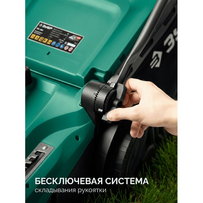 - Мощный двигатель напряжением 40 В ускоряет процесс обработки, а оптимальная ширина кошения снижает нагрузку, что увеличивает ресурс изделия