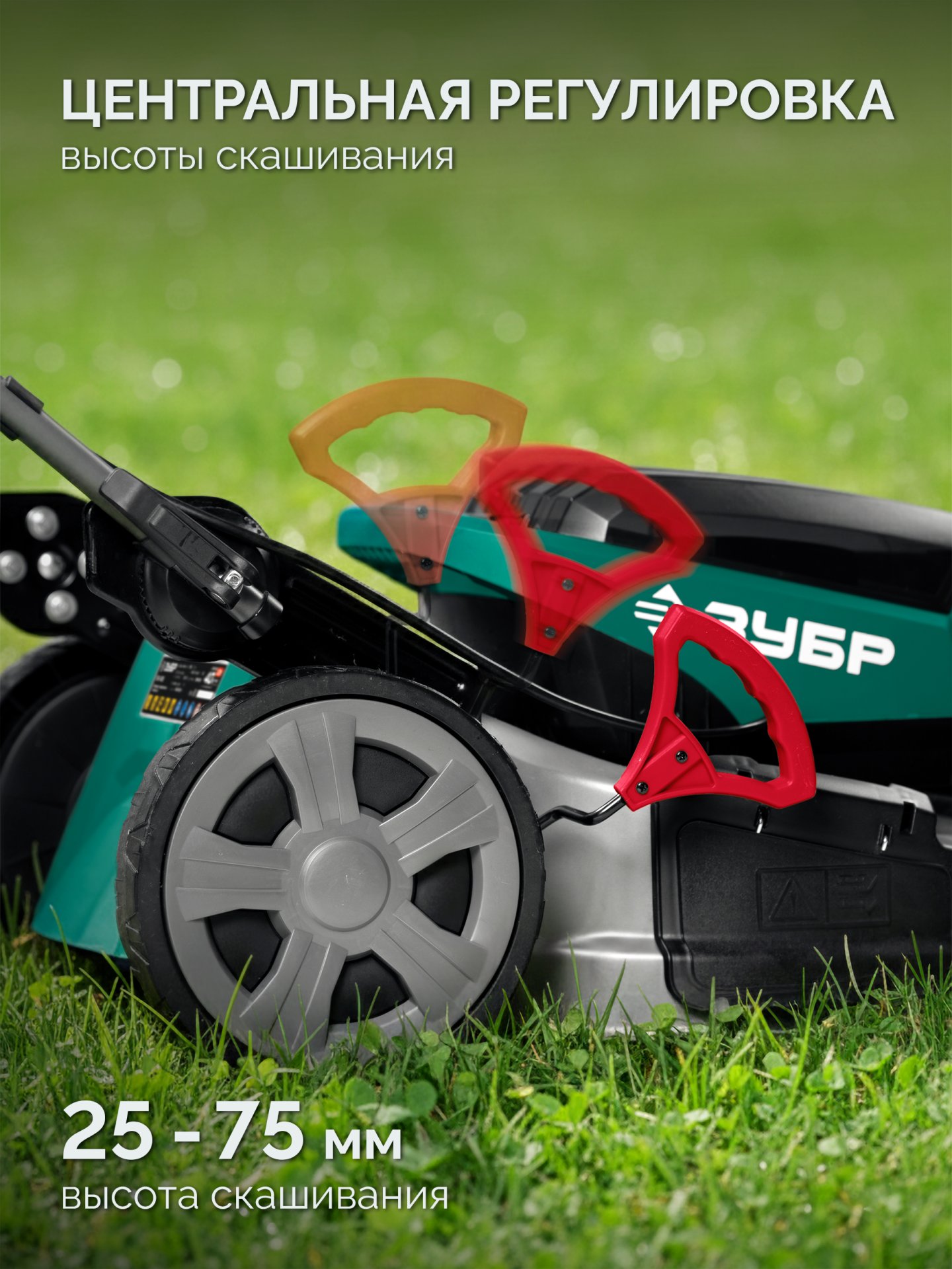 - Центральная регулировка высоты кошения с удобной ступенчатой настройкой расширяет возможности применения газонокосилки