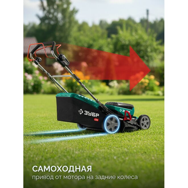 ЗУБР 40 В (2x20В), 500 мм, 2 АКБ LMS (4 Ач), самоходная газонокосилка аккумуляторная бесщеточная (ГКЛ-4050-42)