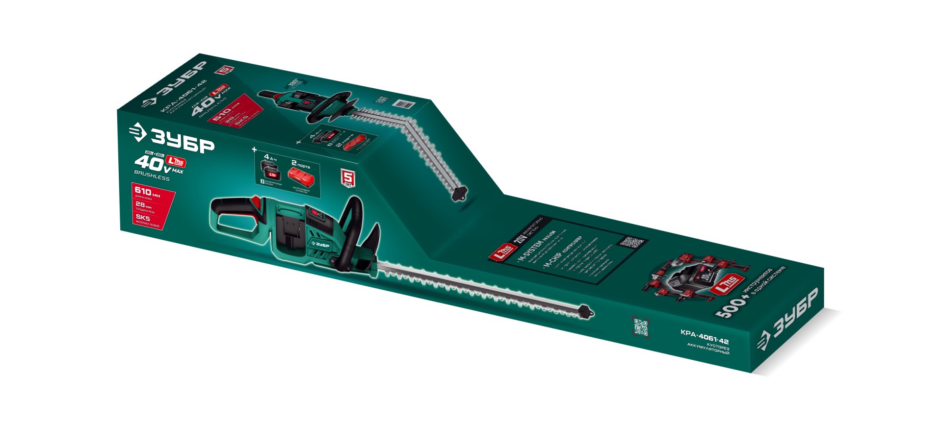 ЗУБР 40 В (2x20В), 610 мм, 2 АКБ LMS (4 Ач), кусторез аккумуляторный бесщеточный (КРА-4061-42)