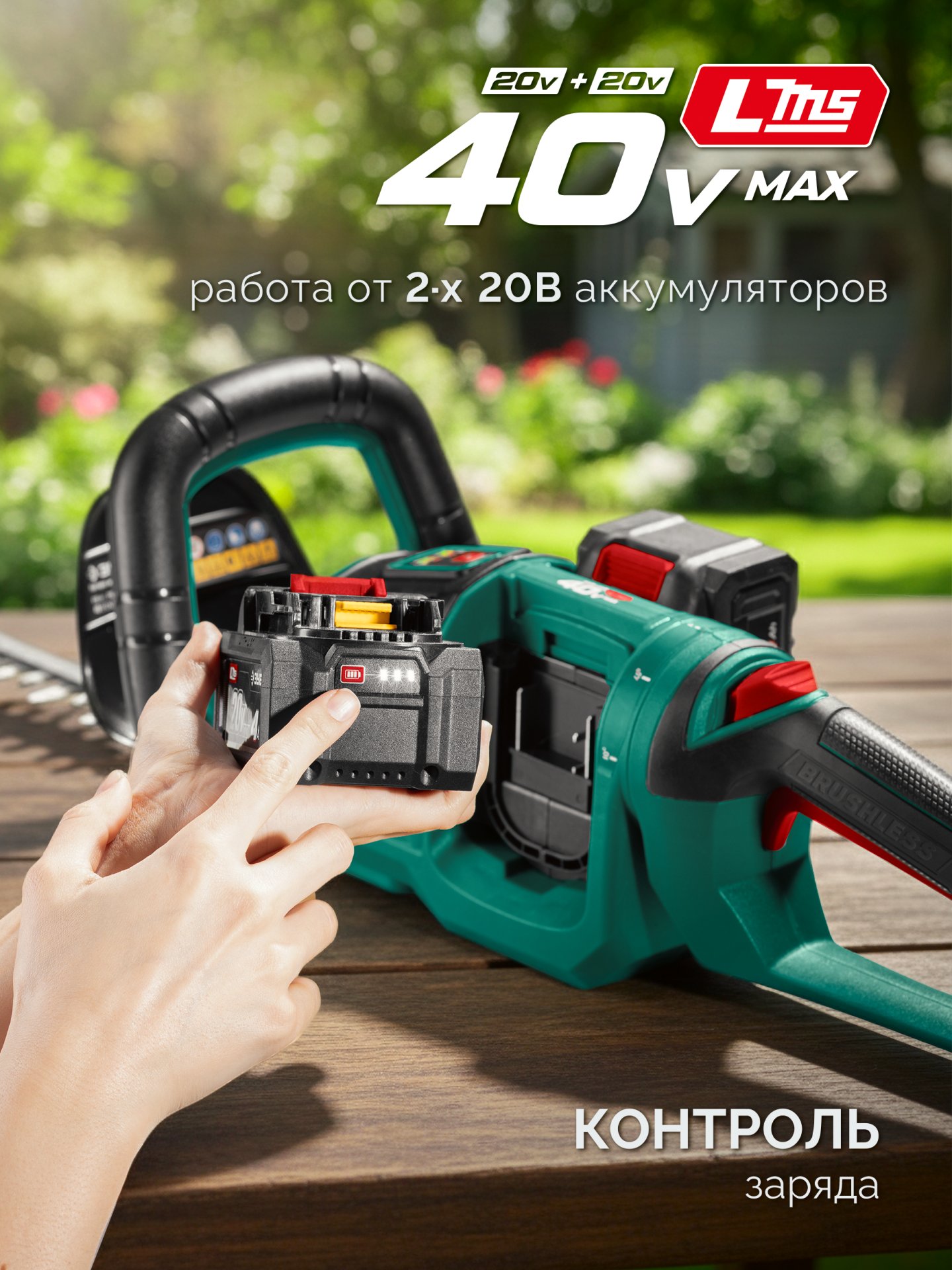 Аккумуляторный кусторез системы LMS предназначен для формирования живых изгородей, ухода за кустарниками и деревьями. Он может быть использован для выполнения как прямой, так и фигурной подрезки, превращая ваш сад в произведение искусства. Надежный и экономичный BRUSHLESS двигатель обеспечивает высокую надежность и производительность. Лезвия выполнены из японской стали SK5 и гарантируют быстрый рез и долгий срок службы. Инструмент имеет поворотную рукоятку для удобной обрезки различных кустарников. Комплектация с двумя аккумуляторами высокой емкости и быстрозарядным устройством позволяет приступить к работе сразу после покупки.Применение