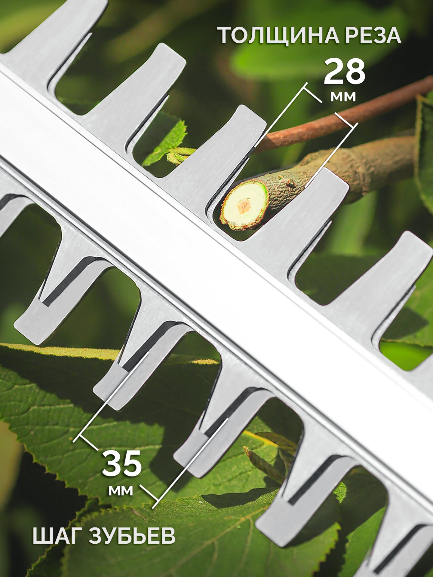 - Длинный нож и большой диаметр реза позволяют работать с различными видами кустарников