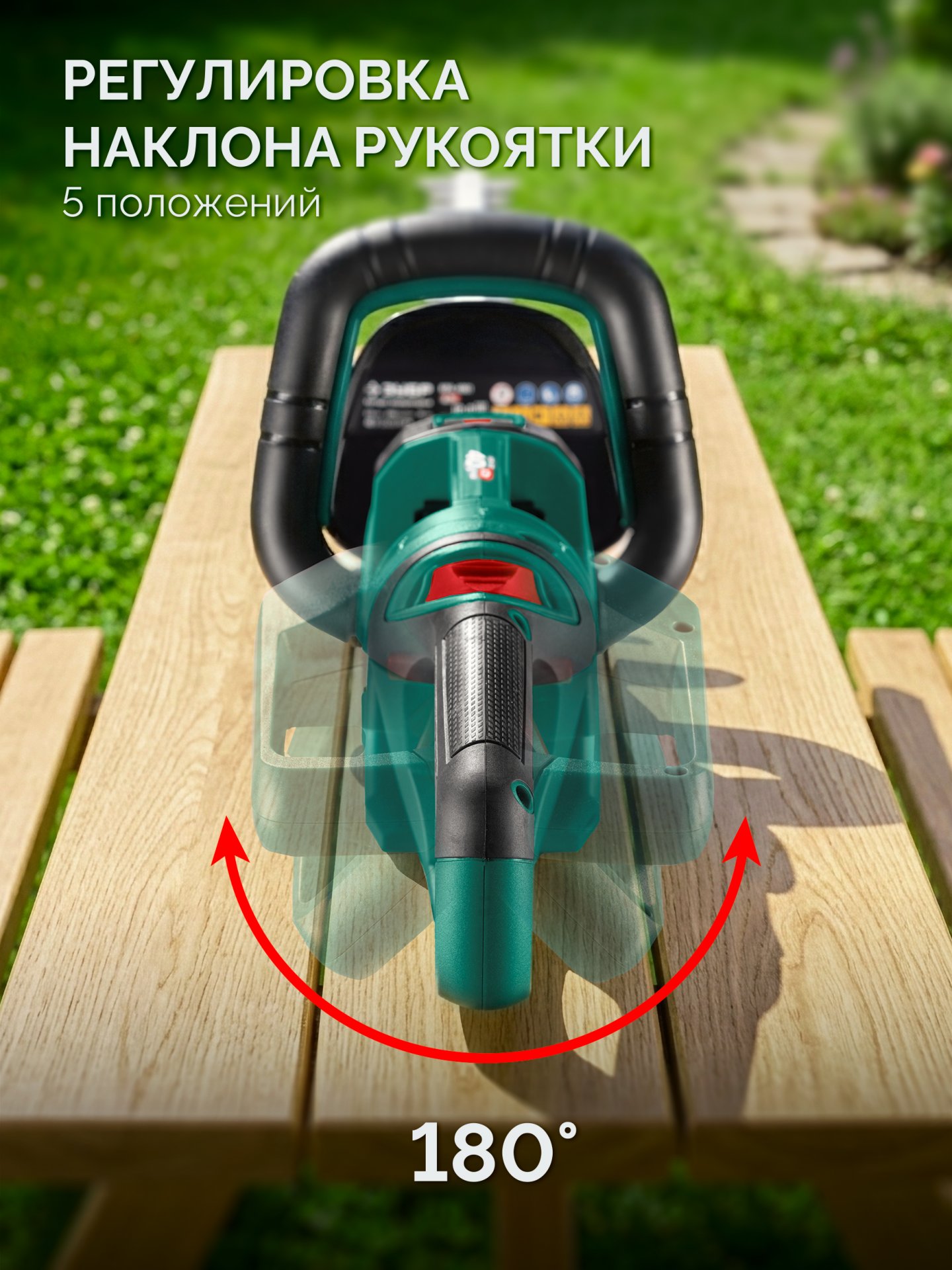 - Поворотная основная рукоятка имеет 5 положений для выбора оптимального угла реза