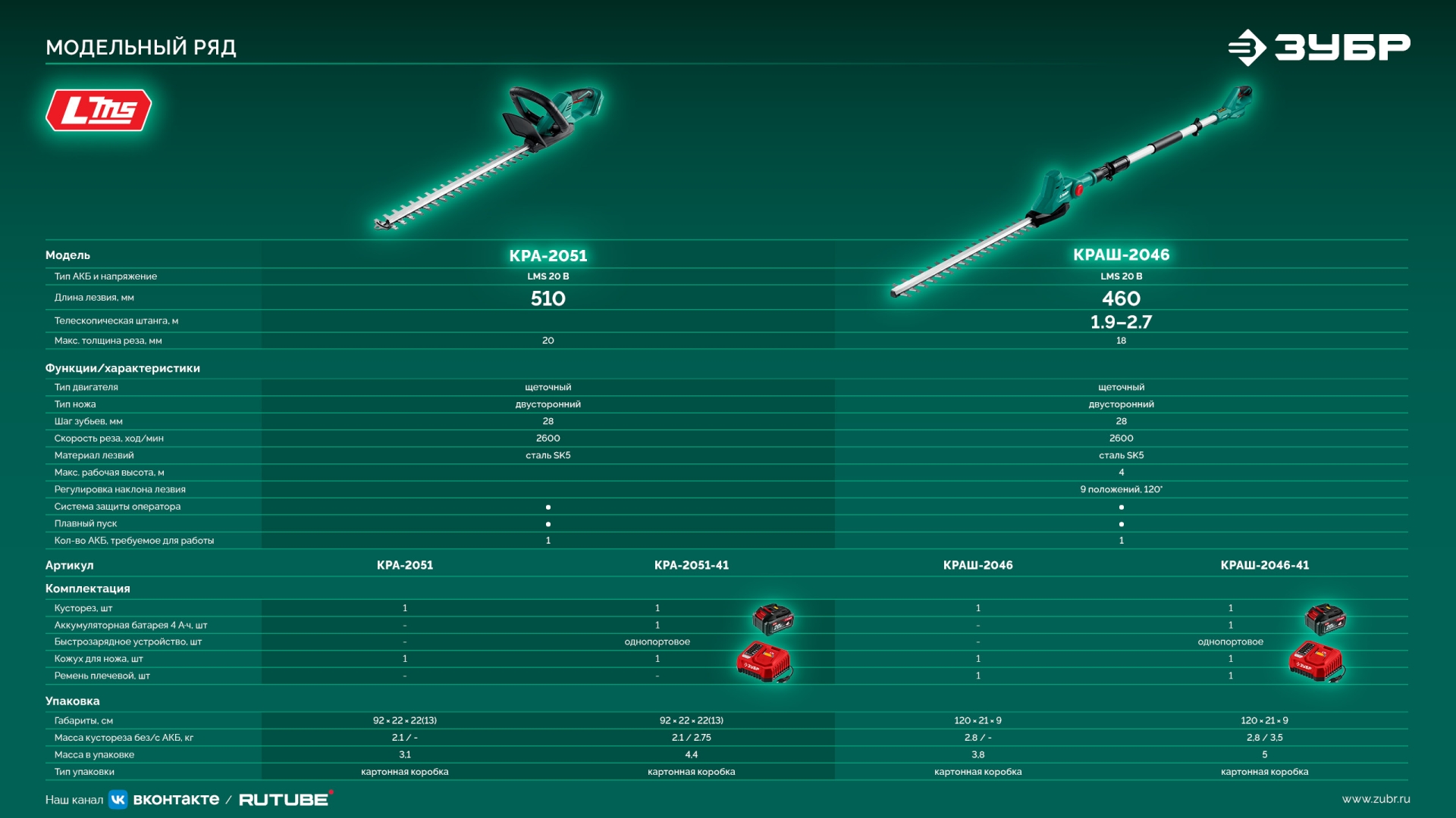 Принадлежности для ЗУБР 40 В (2x20В), 610 мм, 2 АКБ LMS (4 Ач), кусторез аккумуляторный бесщеточный (КРА-4061-42):