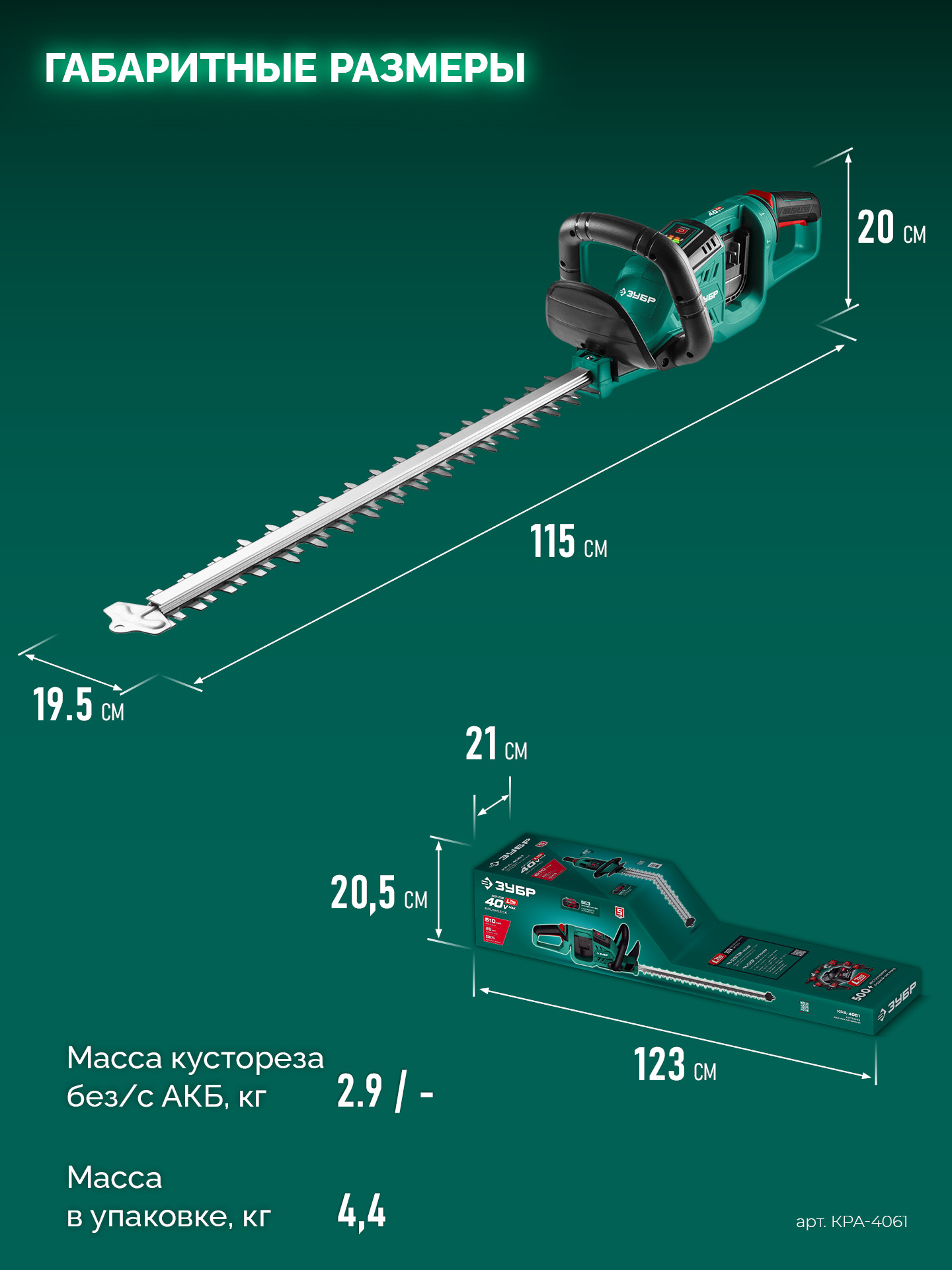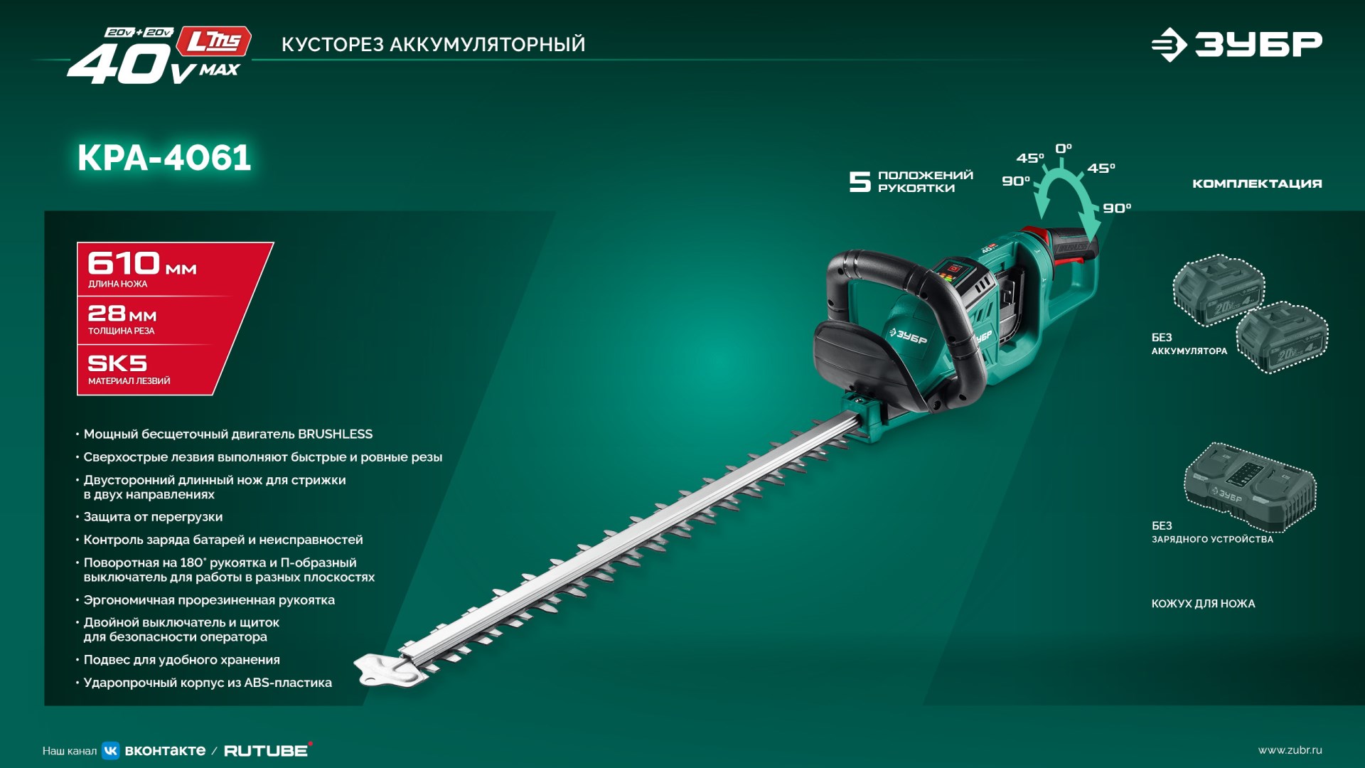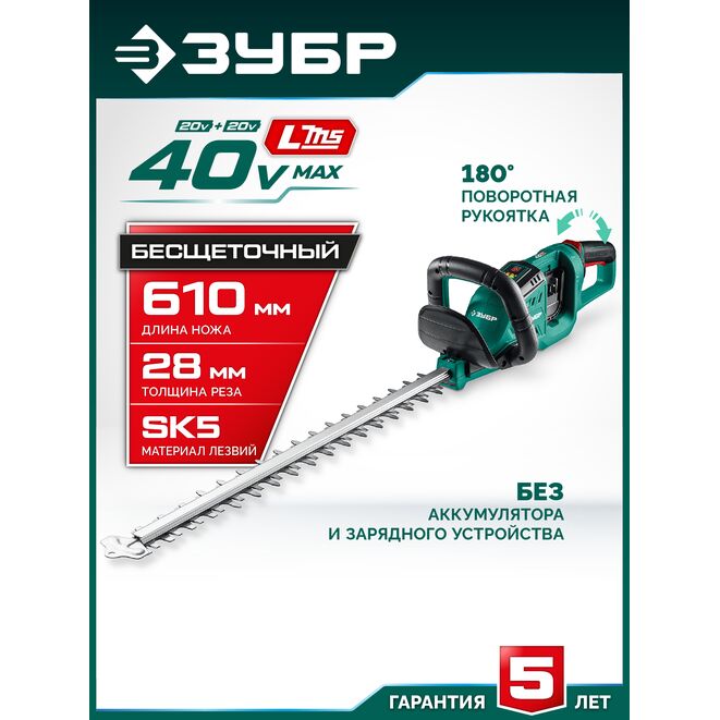 Принадлежности для ЗУБР 40 В (2x20В), 610 мм, без АКБ (LMS), кусторез аккумуляторный бесщеточный (КРА-4061):