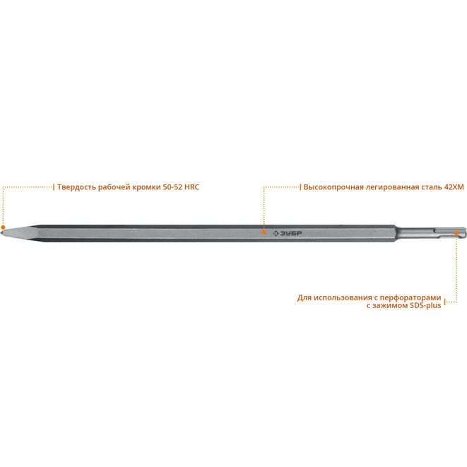 Зубило пикообразное ЗУБР 29361-00-400_z01, предназначено для ремонта, реконструкции, долбежных и демонтажных работ по бетону, камню, кирпичу. Используются с перфораторами с зажимом SDS-plus. Индукционная трехступенчатая закалка со строгим соблюдением температур в каждой зоне при термообработке для повышения стойкости и увеличения рабочего ресурса инструмента. Высокопрочная легированная сталь гарантирует продолжительный срок службы инструмента. Высокая устойчивость к ударам и динамическим нагрузкам. Шлифованная шестигранная форма зубил. Износостойкое покрытие защищает от коррозии.