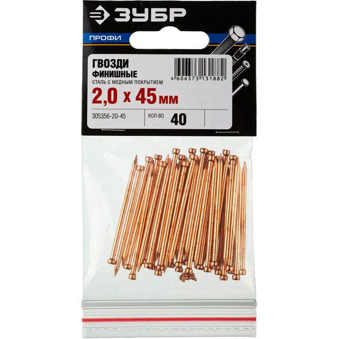 ЗУБР 45 х 2.0 мм, 40 шт., гвозди финишные омедненные 305356-20-45 Профессионал