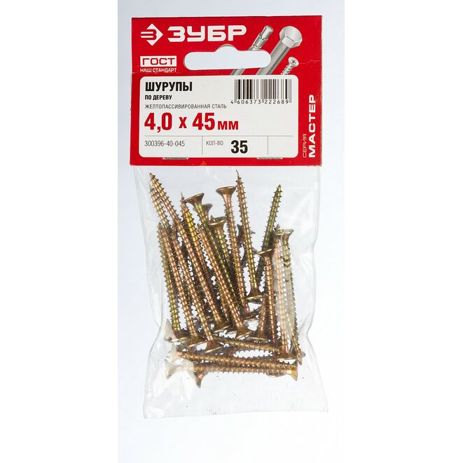 ЗУБР 45 х 4.0 мм, 35 шт., желтый цинк, СУ-Ж саморезы универсальные по дереву 300396-40-045 Мастер
