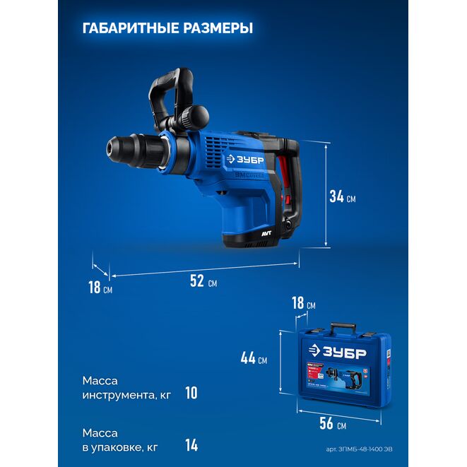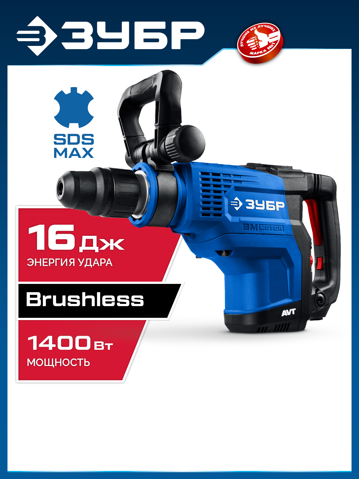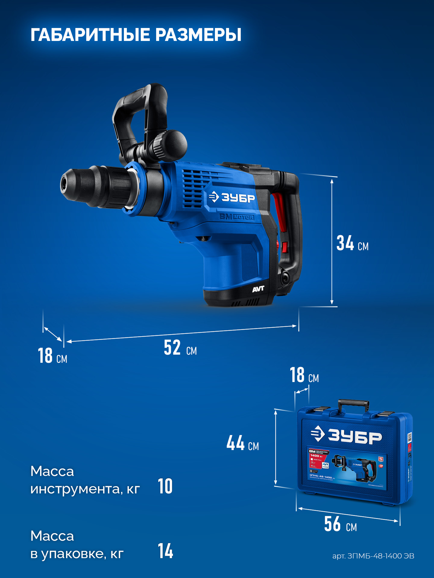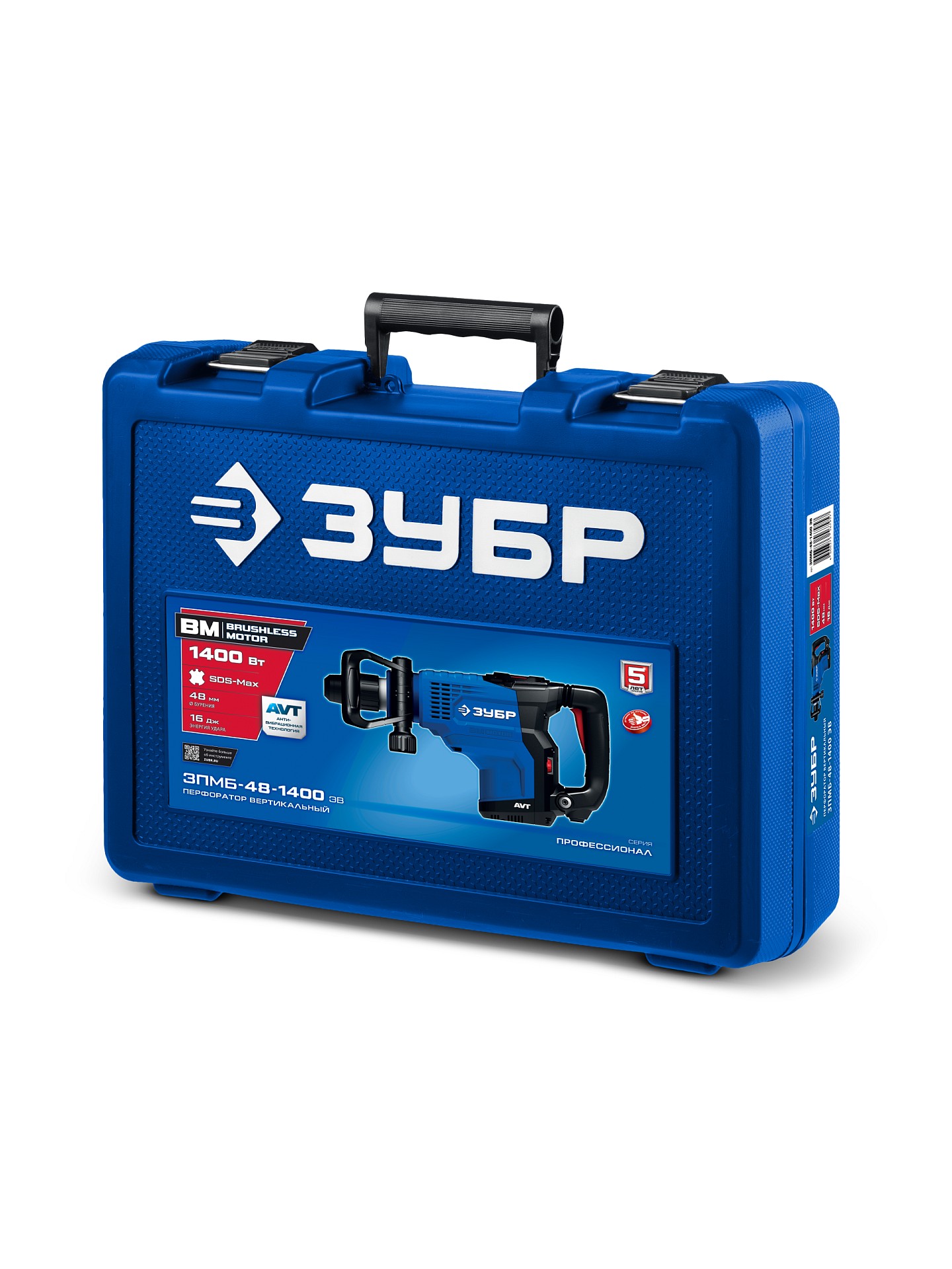 ЗУБР 48 мм, 1400 Вт, АВТ, бесщеточный перфоратор SDS-Max, Профессионал (ЗПМБ-48-1400 ЭВ)