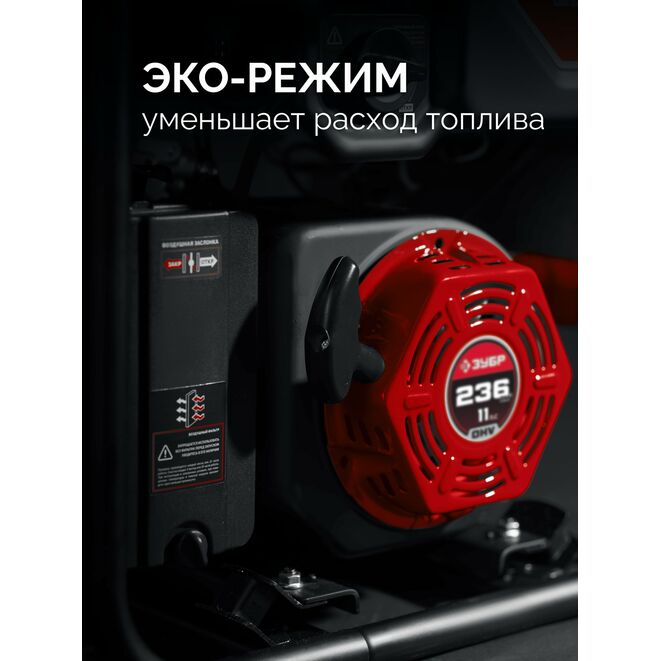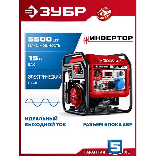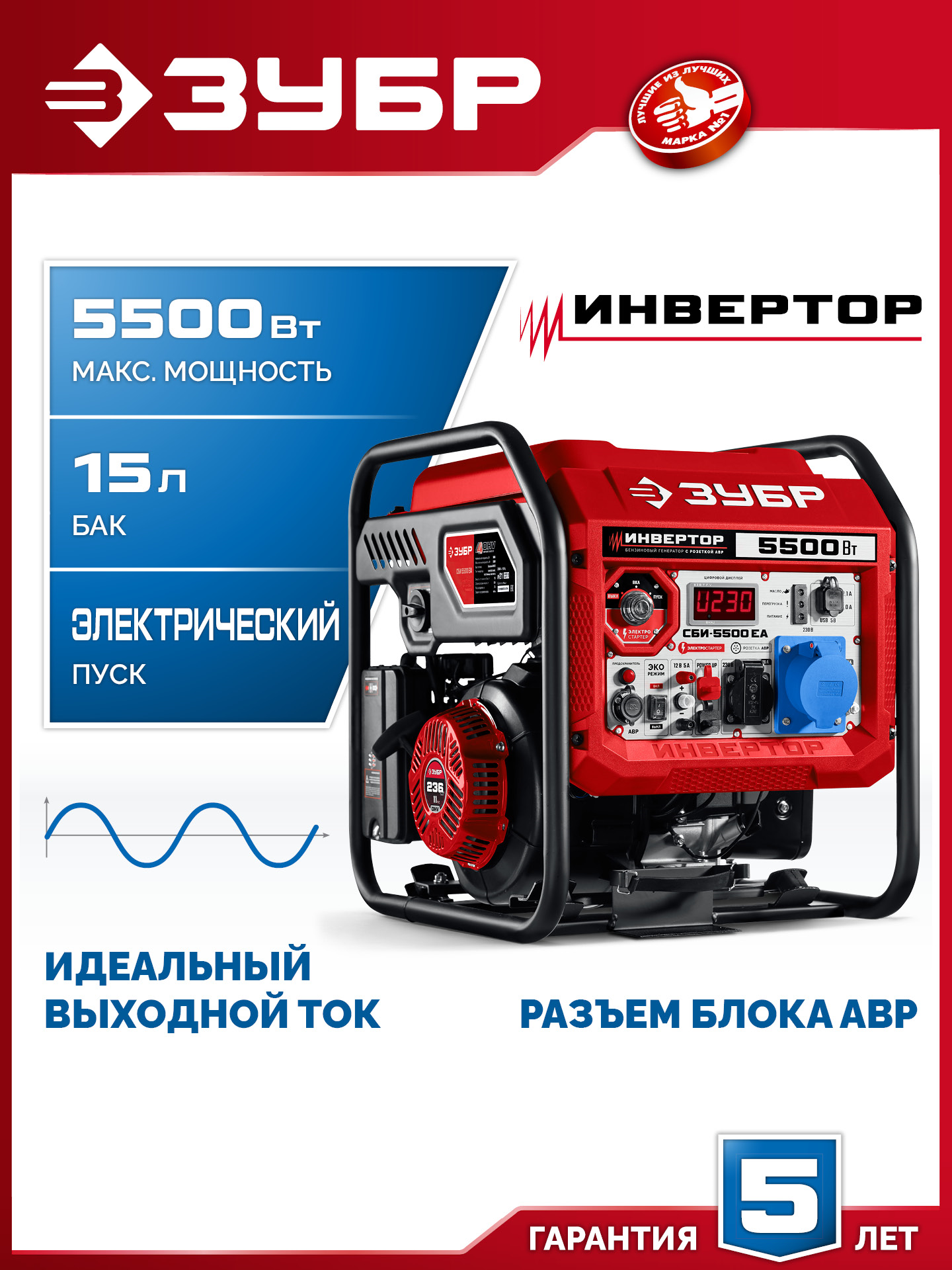 ЗУБР 5500 Вт, инверторный генератор с электростартером и розеткой АВР (СБИ-5500ЕА)