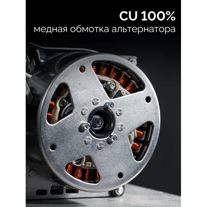 - Медная обмотка альтернатора обеспечивает надежную работу при высокой нагрузке