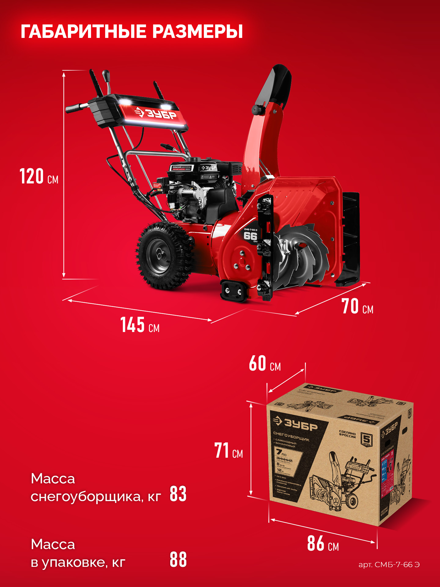 ЗУБР 66 см, бензиновый снегоуборщик (СМБ-7-66 Э)