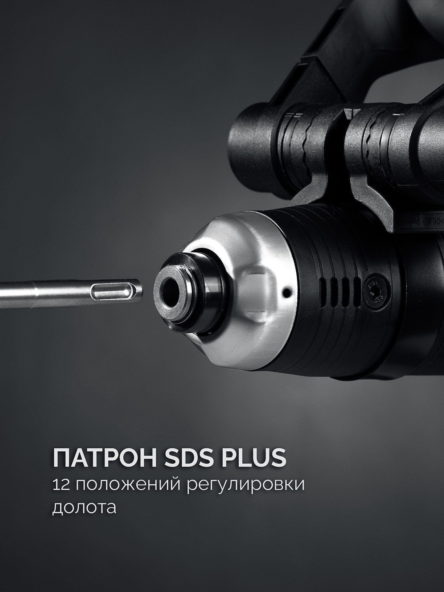 - Патрон SDS-Plus для установки широкого спектра профессионального расходного инструмента и быстрой замены в процессе работы
