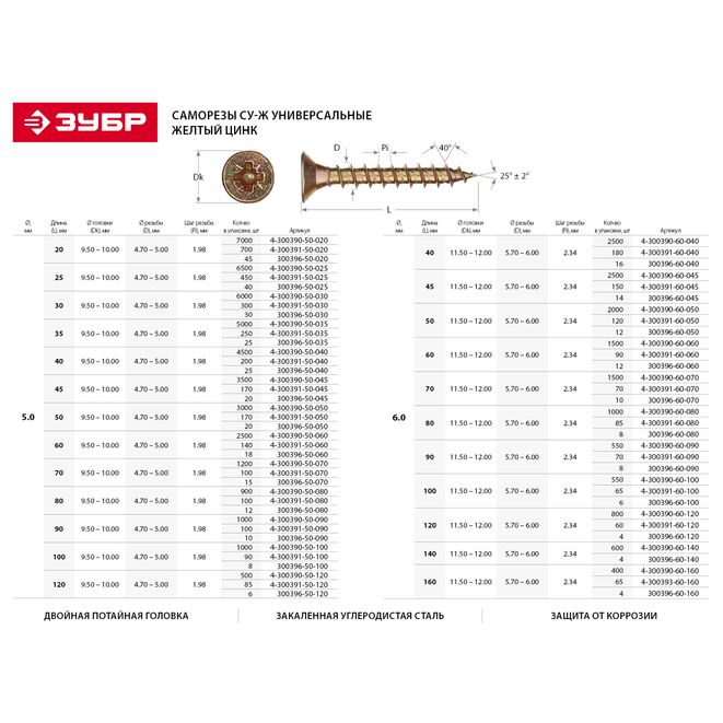 Для крепления деревянных конструкций и тонколистового металла. При работе с твердыми породами дерева (дуб, бук и т.п.) необходимо предварительное сверление.Дополнительная информация
