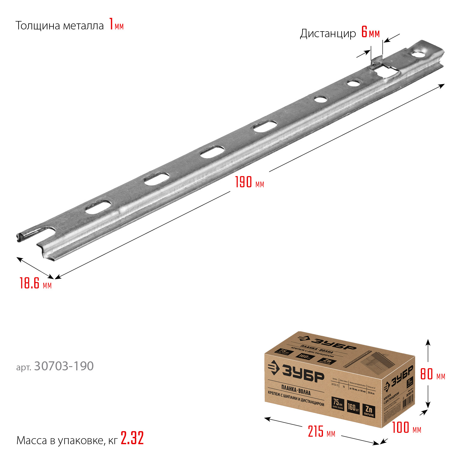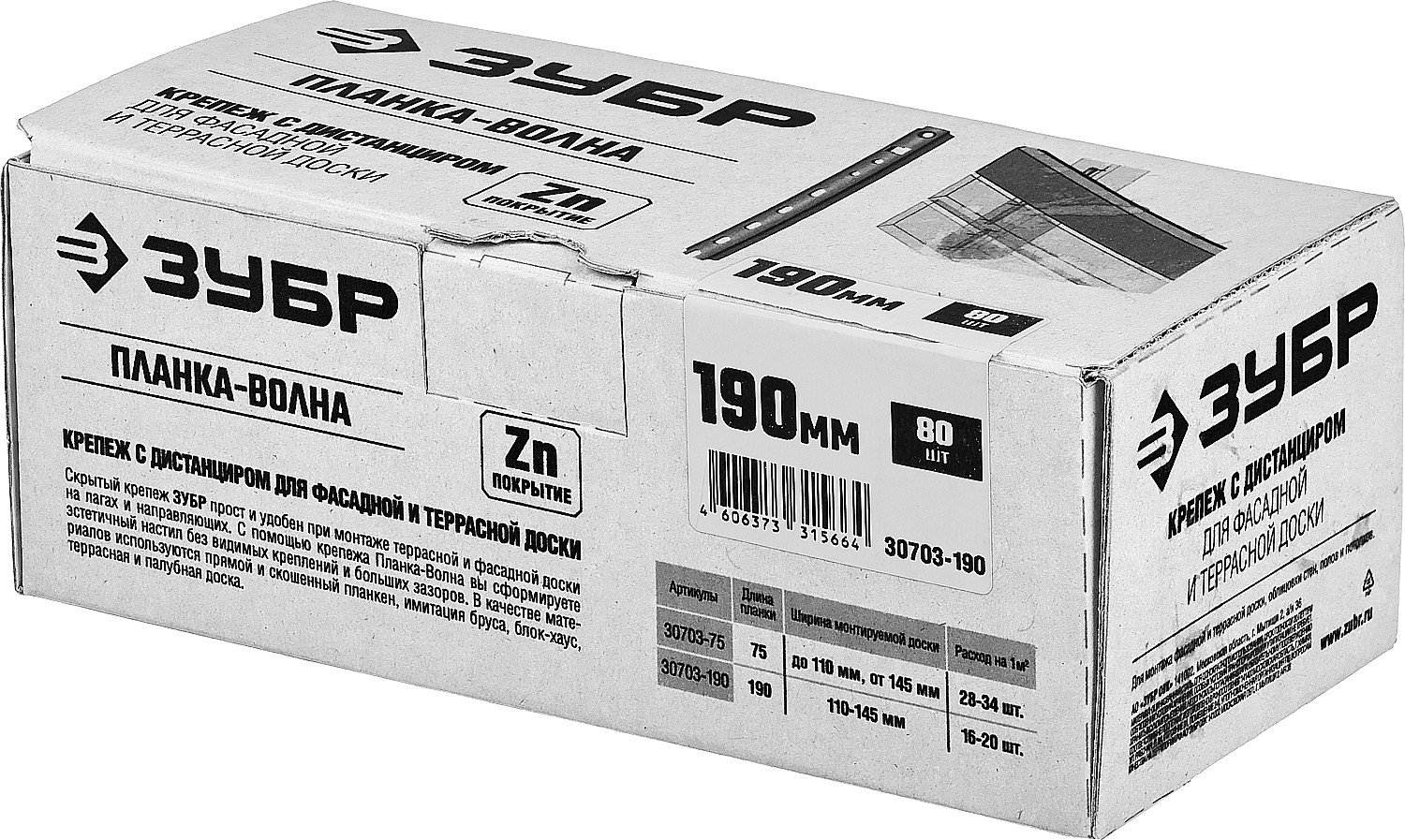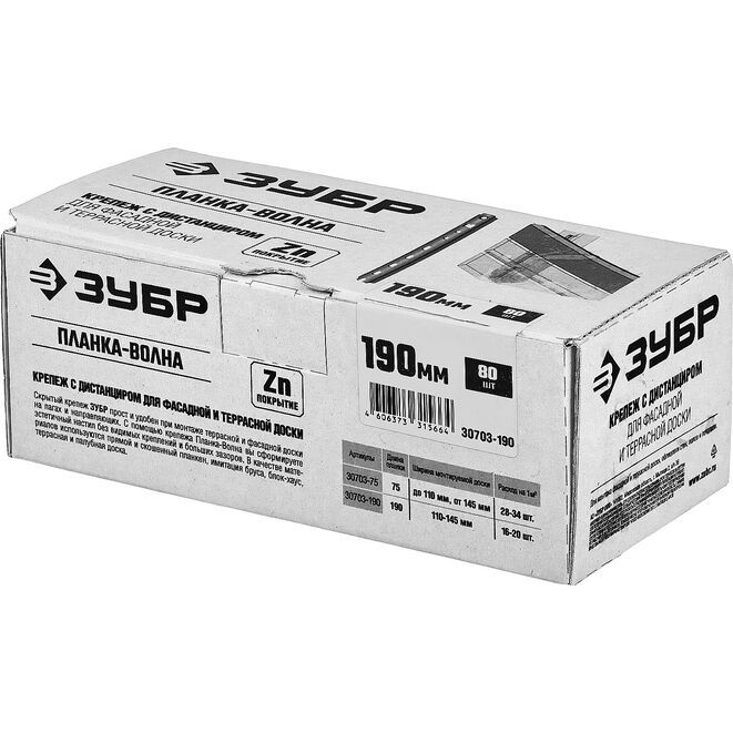 ЗУБР Планка-Волна, 190 мм, цинк, 80 шт, крепеж для монтажа фасадной и террасной доски (30703-190)