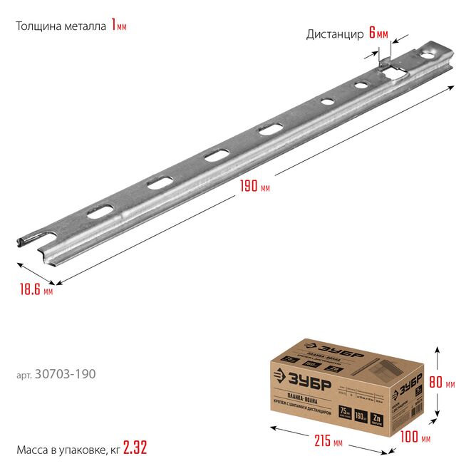 Крепеж с дистанциром для фасадной и террасной доски Планка-Волна ЗУБР 30703-190, предназначен для существенного ускорения и облегчения проведения отделочных работ, обладая при этом рядом преимуществ по сравнению с традиционным креплением при помощи гвоздей. Крепление имеет эстетичный внешний вид, поскольку крепеж невидим за доской. Дистанцир обеспечивает зазор 6мм между досками. Изготовлен из высококачественной листовой стали. Цинковое покрытие надежно защищает от коррозии.Характеристики ЗУБР 30703-190: