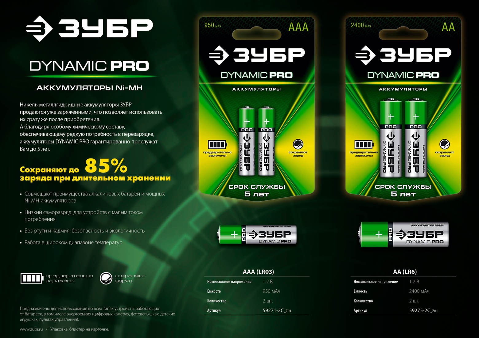 ЗУБР АА, 2 шт на карточке, аккумулятор Ni-Mh "DYNAMIC PRO" 59275-2C_z01