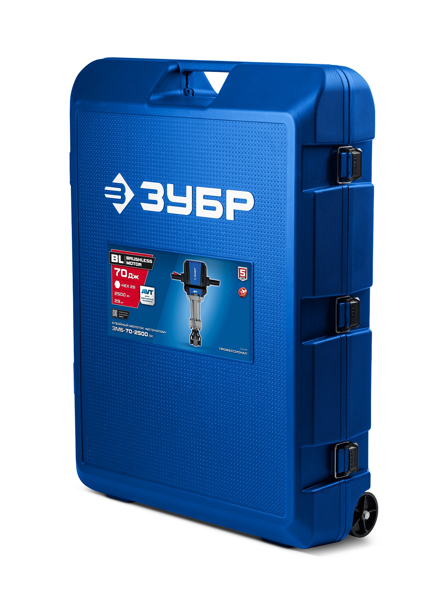 Молоток отбойный (бетонолом) ЗУБР ЗМБ-70-2500 ВК предназначен для разрушения конструкций из бетона, железобетона, кирпича и камня, долбления асфальтовых, бетонных и плиточных покрытий, уплотненного грунта и других строительных работ.Характеристики ЗУБР ЗМБ-70-2500 ВК: