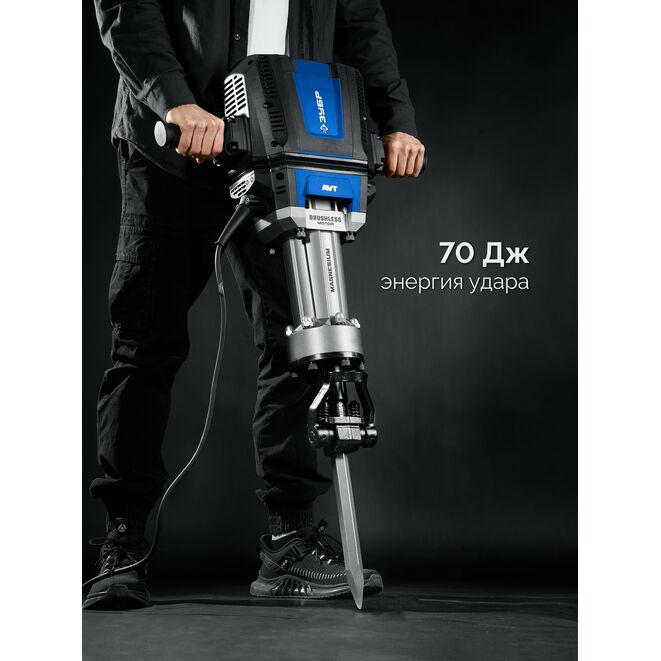 Мощный представитель среди инструментов на рынке с энергией удара 70 Дж и бесщёточным мотором. Подходит для разрушения конструкций любого типа. Длинный провод 6 метров, эргономичный двуручный хват и антивибрационная система позволяют надежно удерживать инструмент, а значительный вес инструмента сам создает необходимое давящее усилие для продуктивной работыПрименение