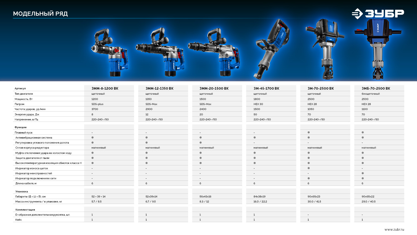 Принадлежности для ЗУБР Бетонолом, 70 Дж, 2500 Вт, АВТ, бесщеточный отбойный молоток HEX-28, Профессионал (ЗМБ-70-2500 ВК):